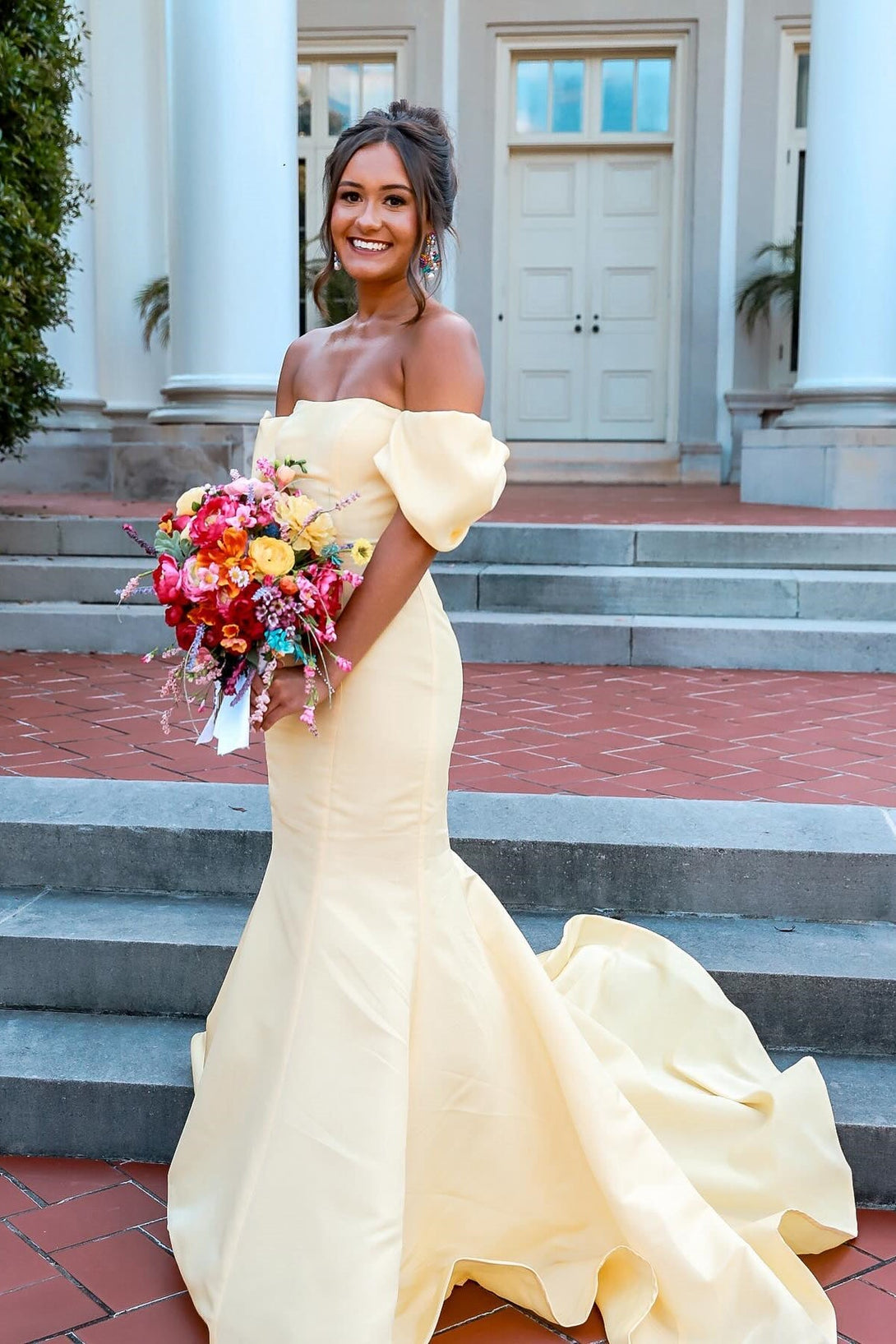Hot Pink Strapless Mermaid Long Party Dress with Short Sleeves