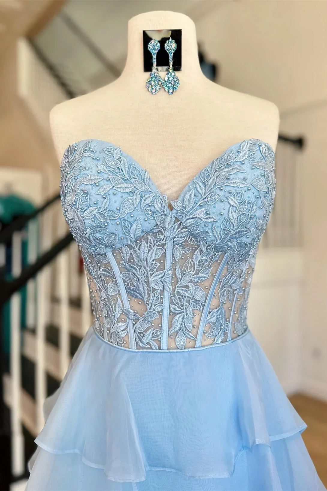 Illusion Applique Chiffon Ruffles Long Prom Dress