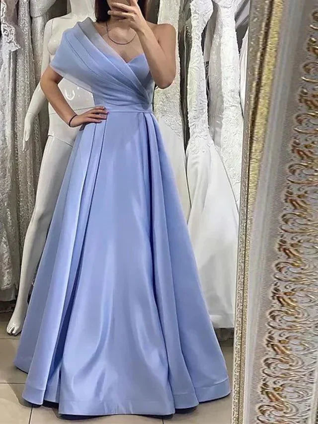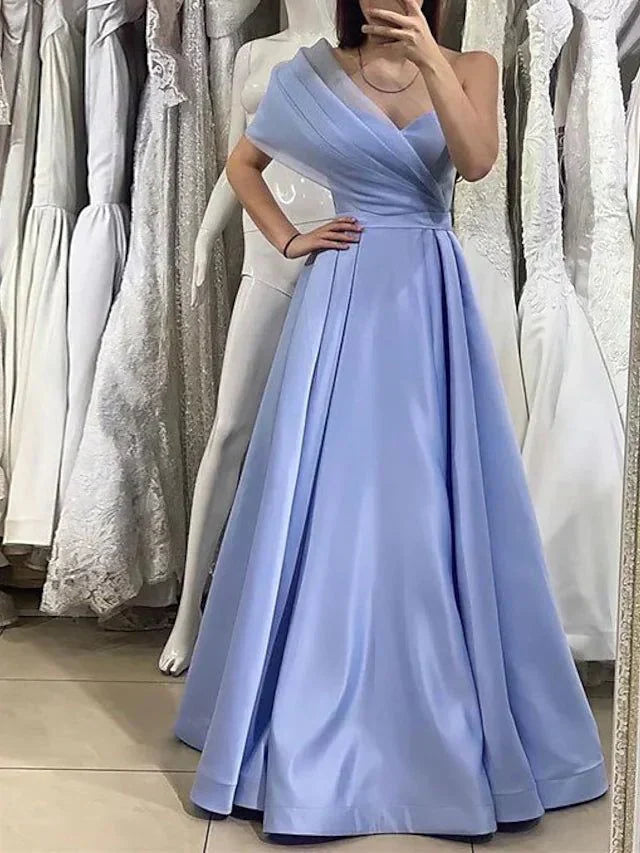 Lavender One Shoulder A-Line Satin Long Prom Dress Elegant Evening Dress