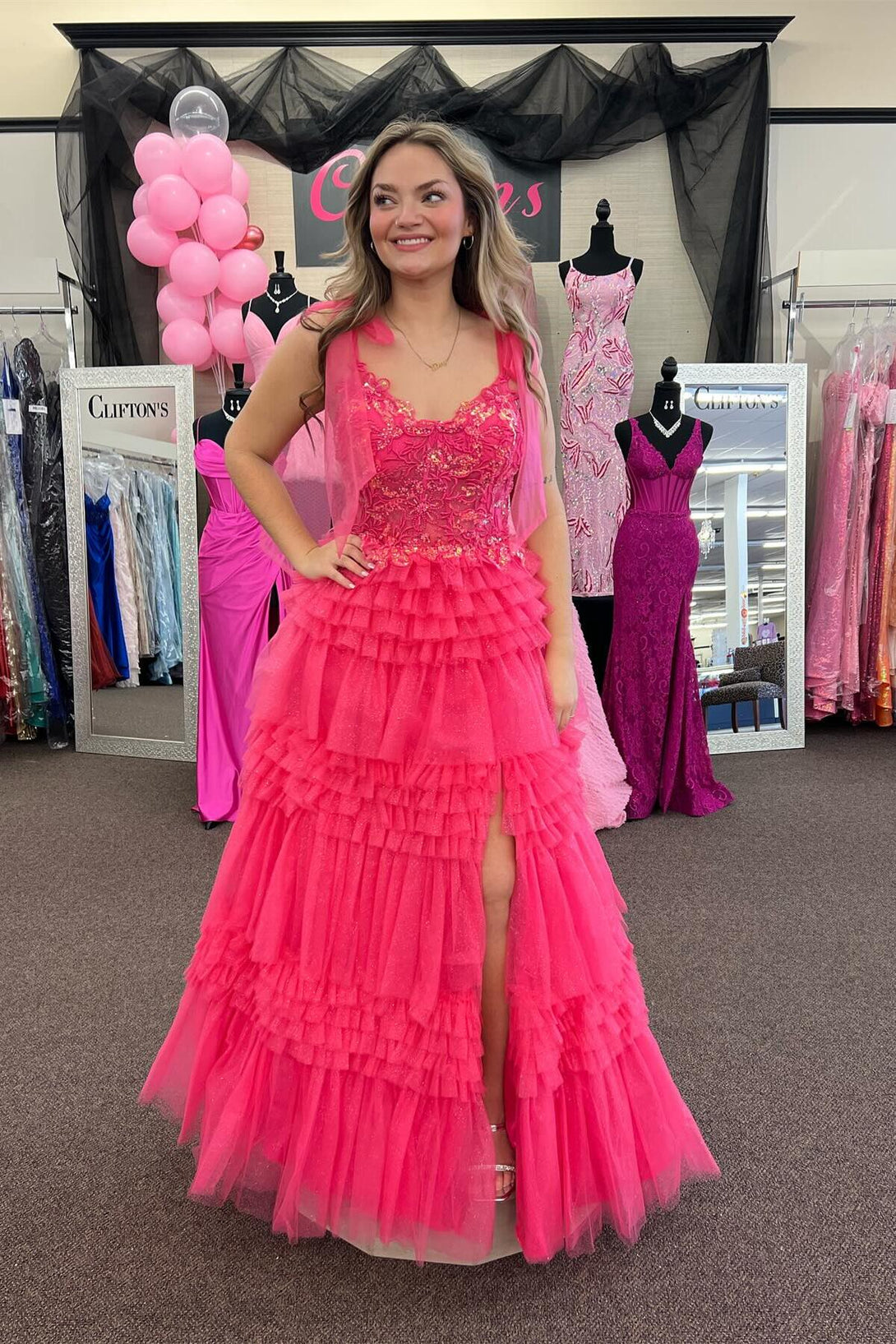Light Blue Corset Tulle Tiered Ruffles A-line Long Prom Dress