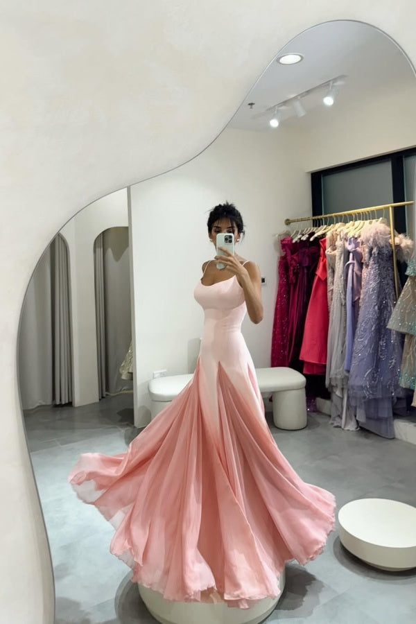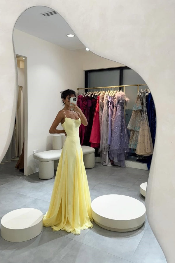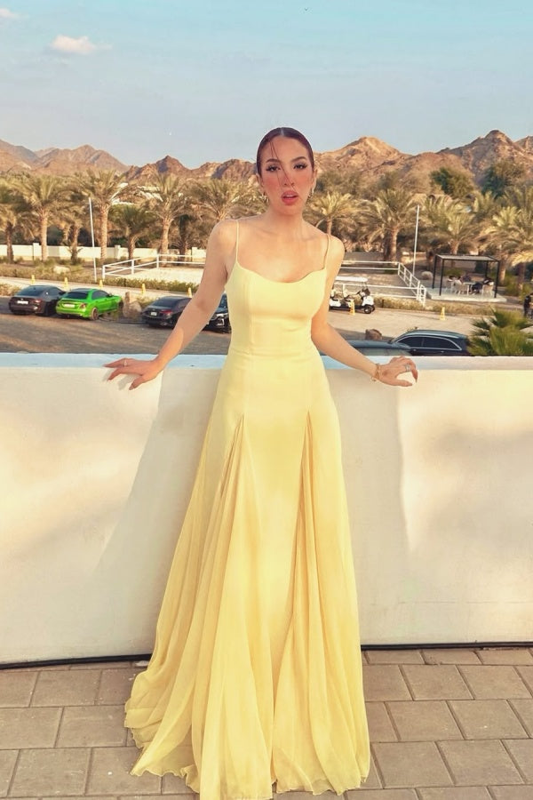 Light Yellow Spaghetti Straps Chiffon Stitching Semi-formal Summer Prom Dress ssr0601