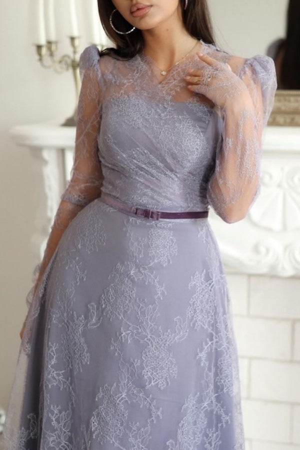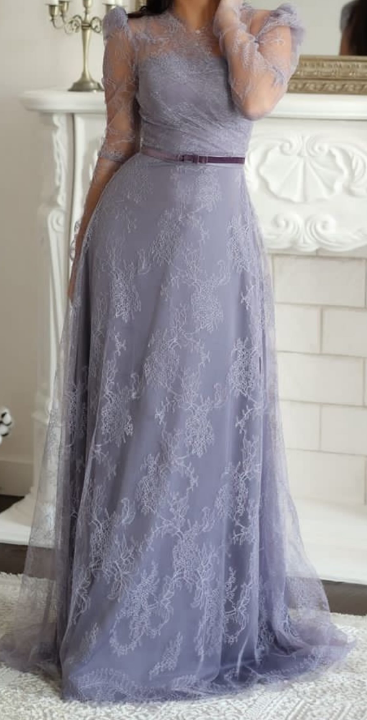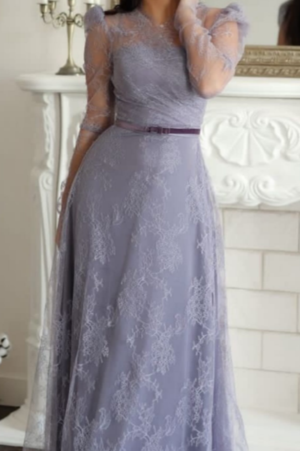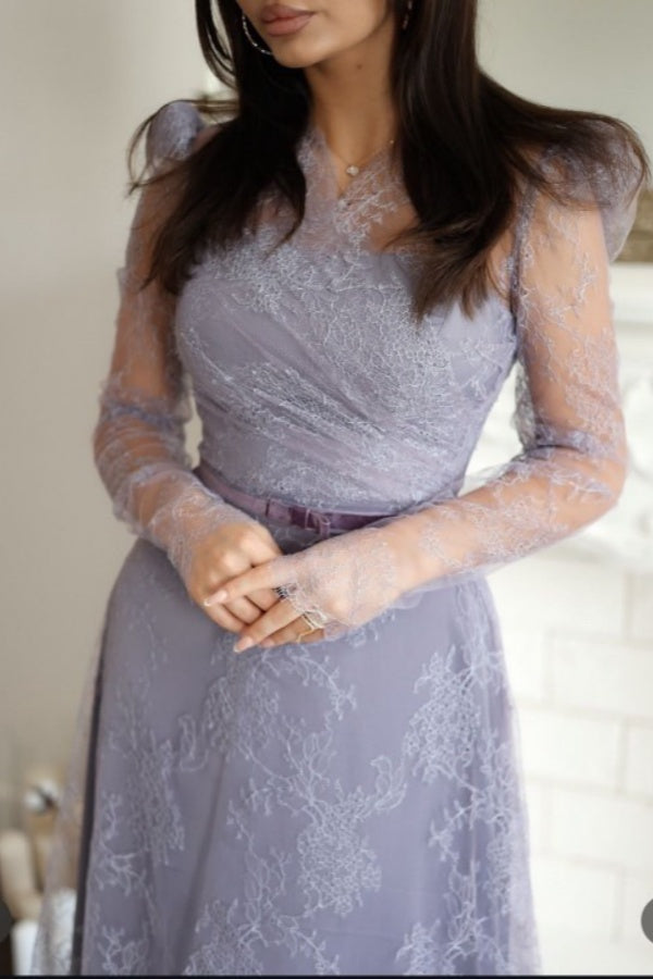Lilac Lace Mermaid Long Sleeves Prom Dress SO0003