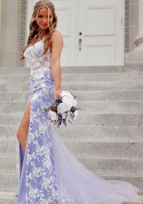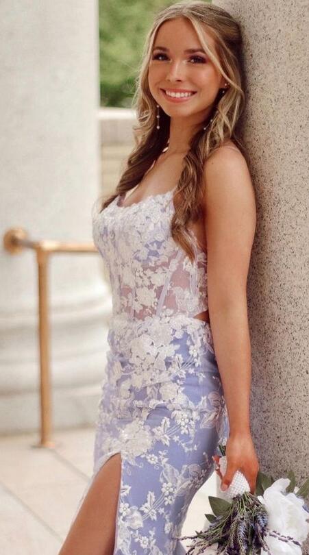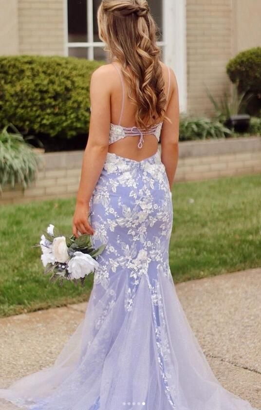 Lilac Mermaid Bodycon Lace Prom Dresses
