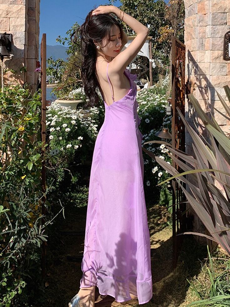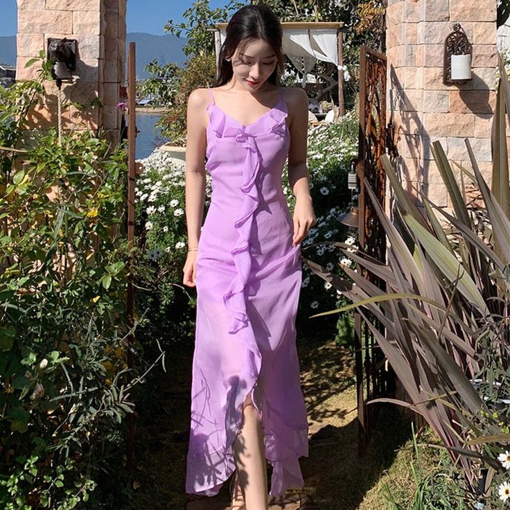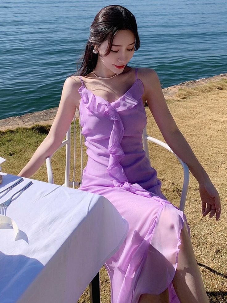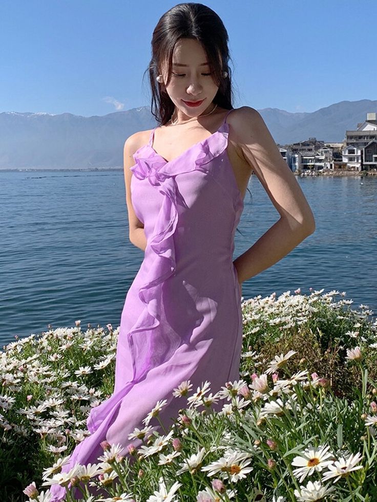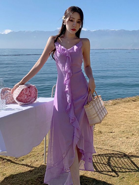 Lilac Ruffle Chiffon Prom Dress Birthday Party Gown