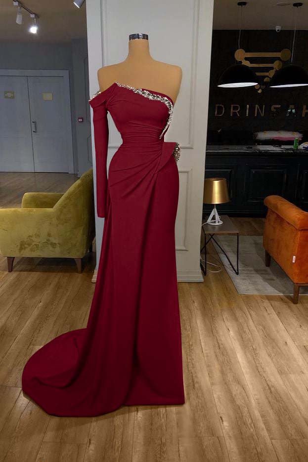 Orange Long Sleeves Prom Dress Mermaid With Sequins PD0530