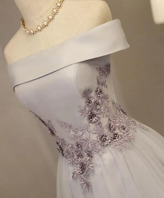 Lovely Light Grey Homecoming Dress Tulle Short Party Dress Off Shoulder Formal Dress Elegant