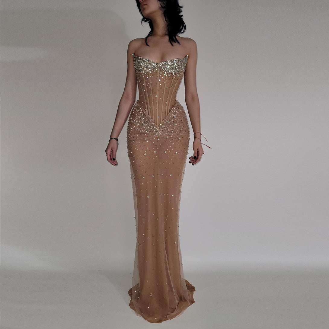 Luxurious Mermaid Crystal Beaded Hand Embroidered Corset Prom Dress YH0089