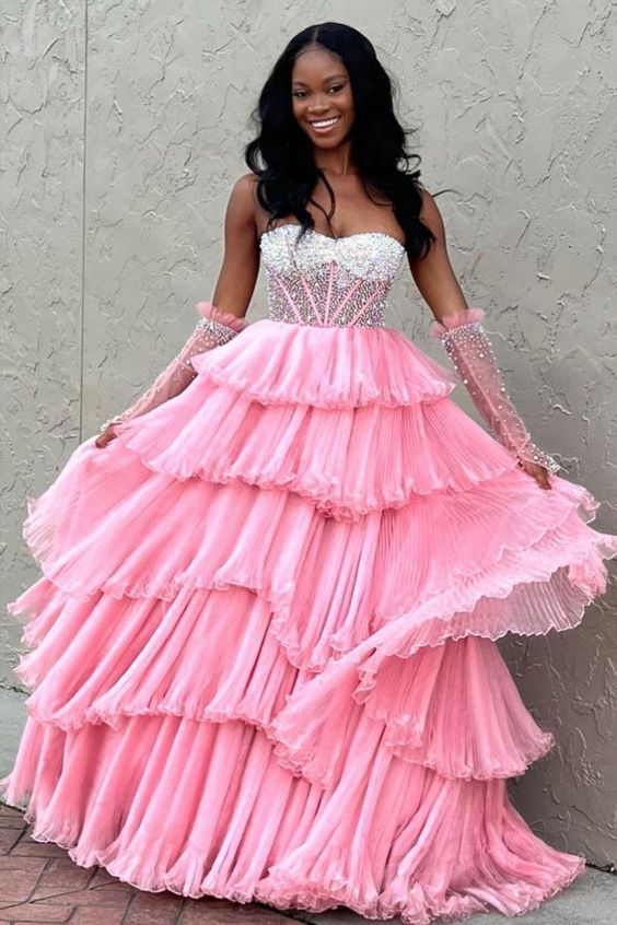 Luxury Beaded Sleeveless Pleated Evening Prom Dresses