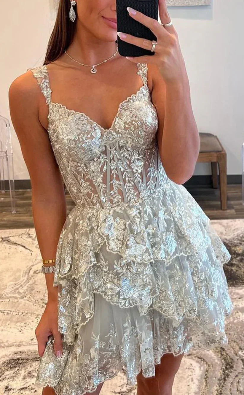 Luxury Sequin Lace Ruffle Homecoming Dress