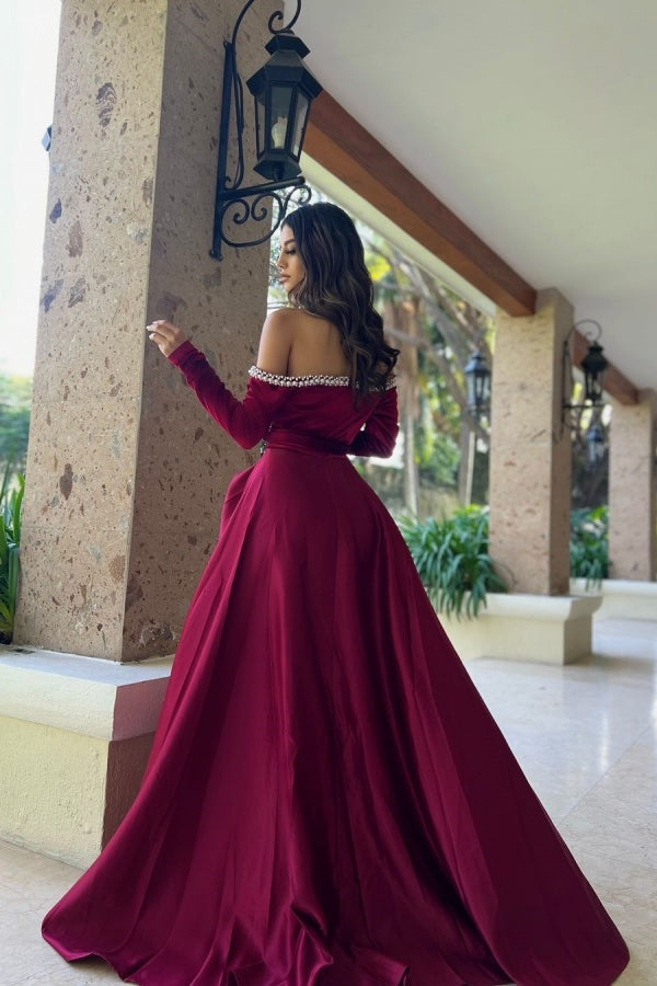 Mulberry Beaded Split Strapless Long sleeves Prom Dress ssr0296
