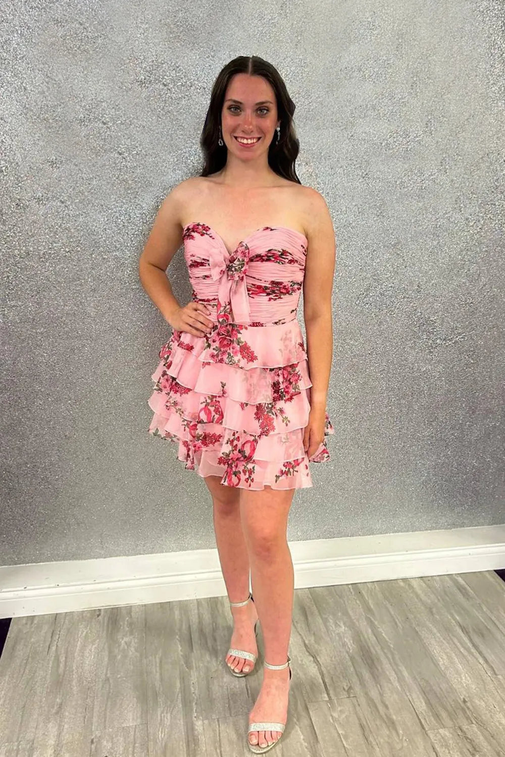 New A Line Sweetheart Blue Printed Short Homecoming Dress with Ruffles