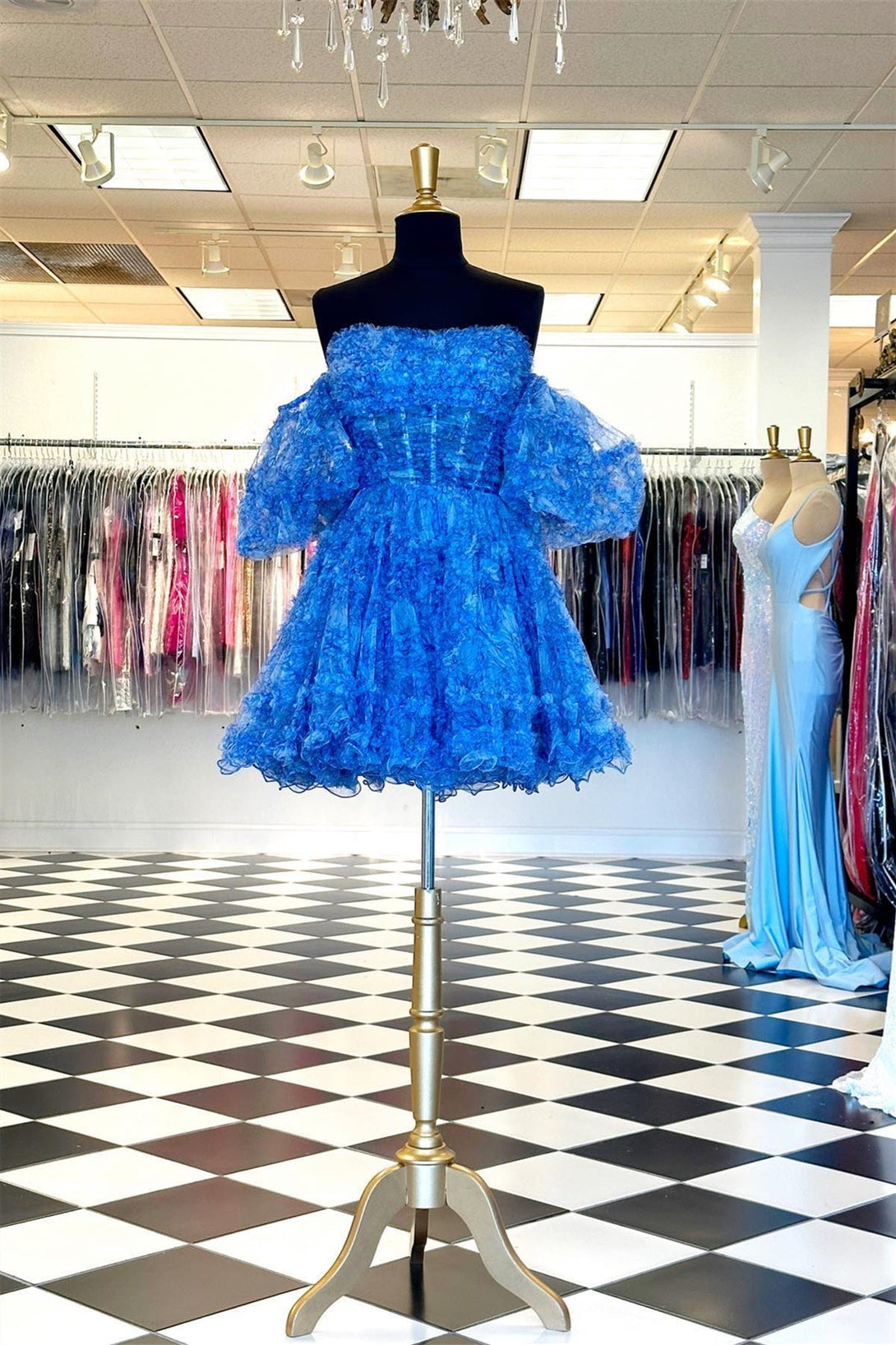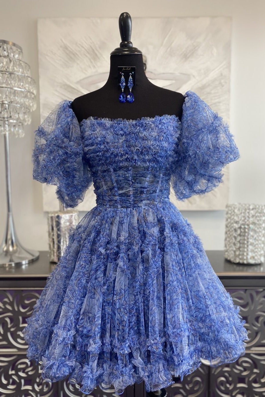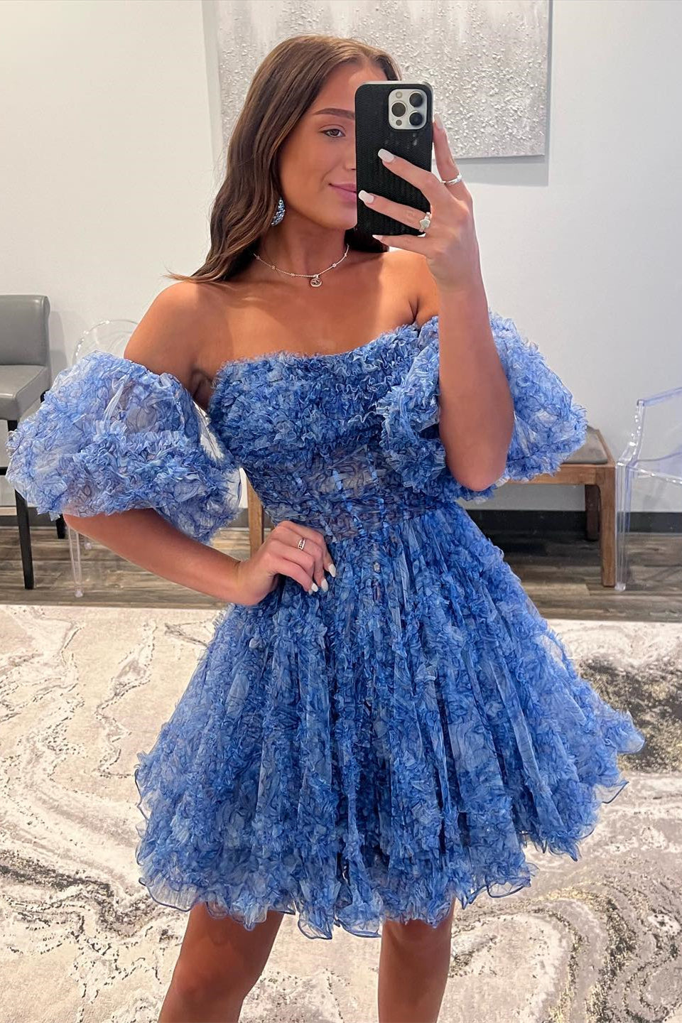 New Arrival Floral Print Ruffles A-Line Homecoming Dress
