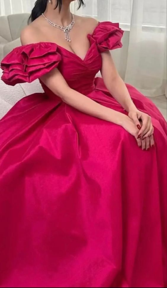 Off The Shoulder A-Line Hot Pink Evening Prom Dress