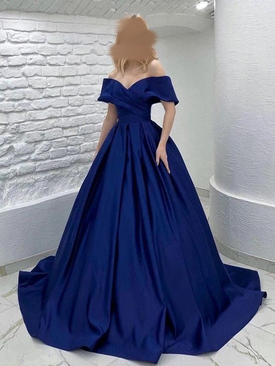 Off The Shoulder Blue A-Line Evening Prom Dress
