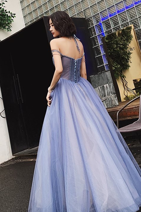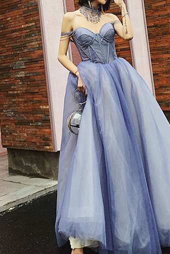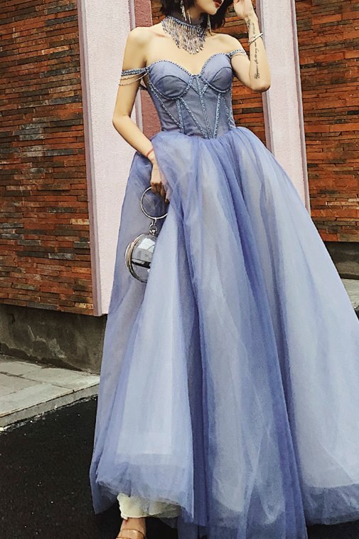 Off the Shoulder Blue Long Prom Dress