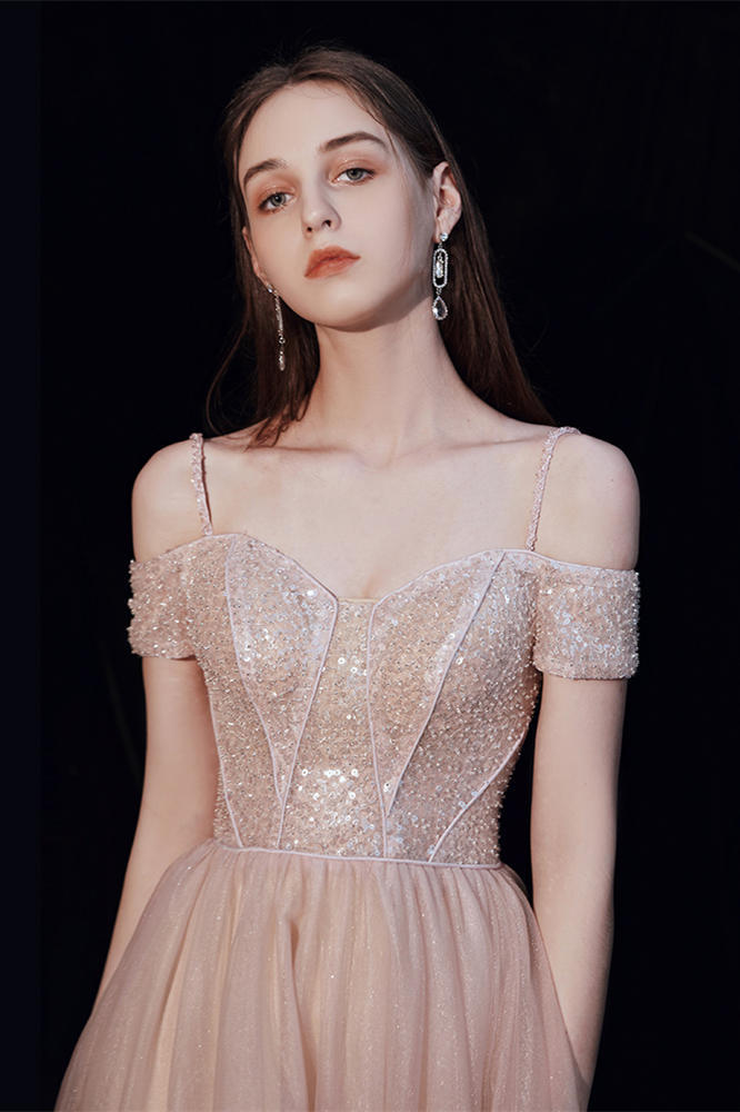 Off the Shoulder Blush Tulle Long Party Dress