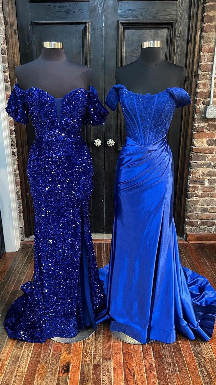 Off the Shoulder Fuchsia Sequin Mermaid Long Formal Dress