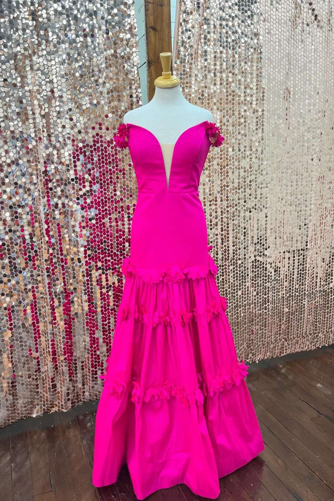 Off the Shoulder Hot Pink A-line Long Party Dress
