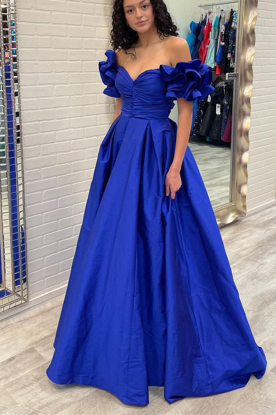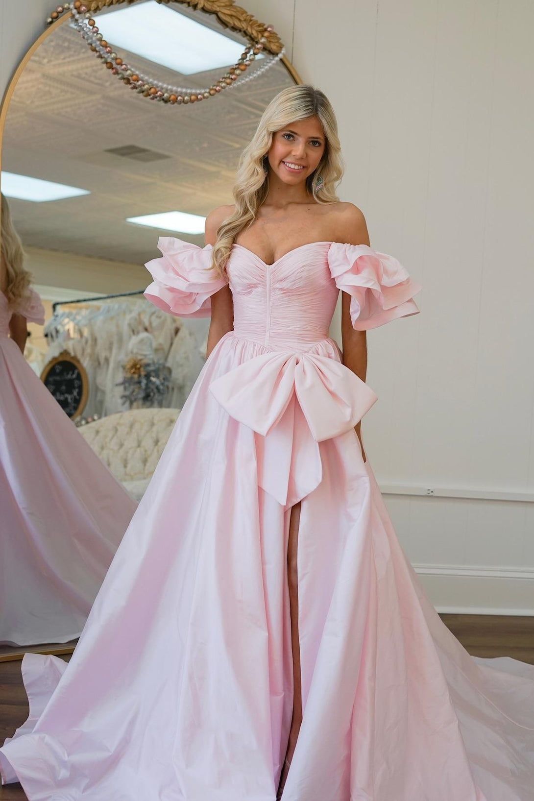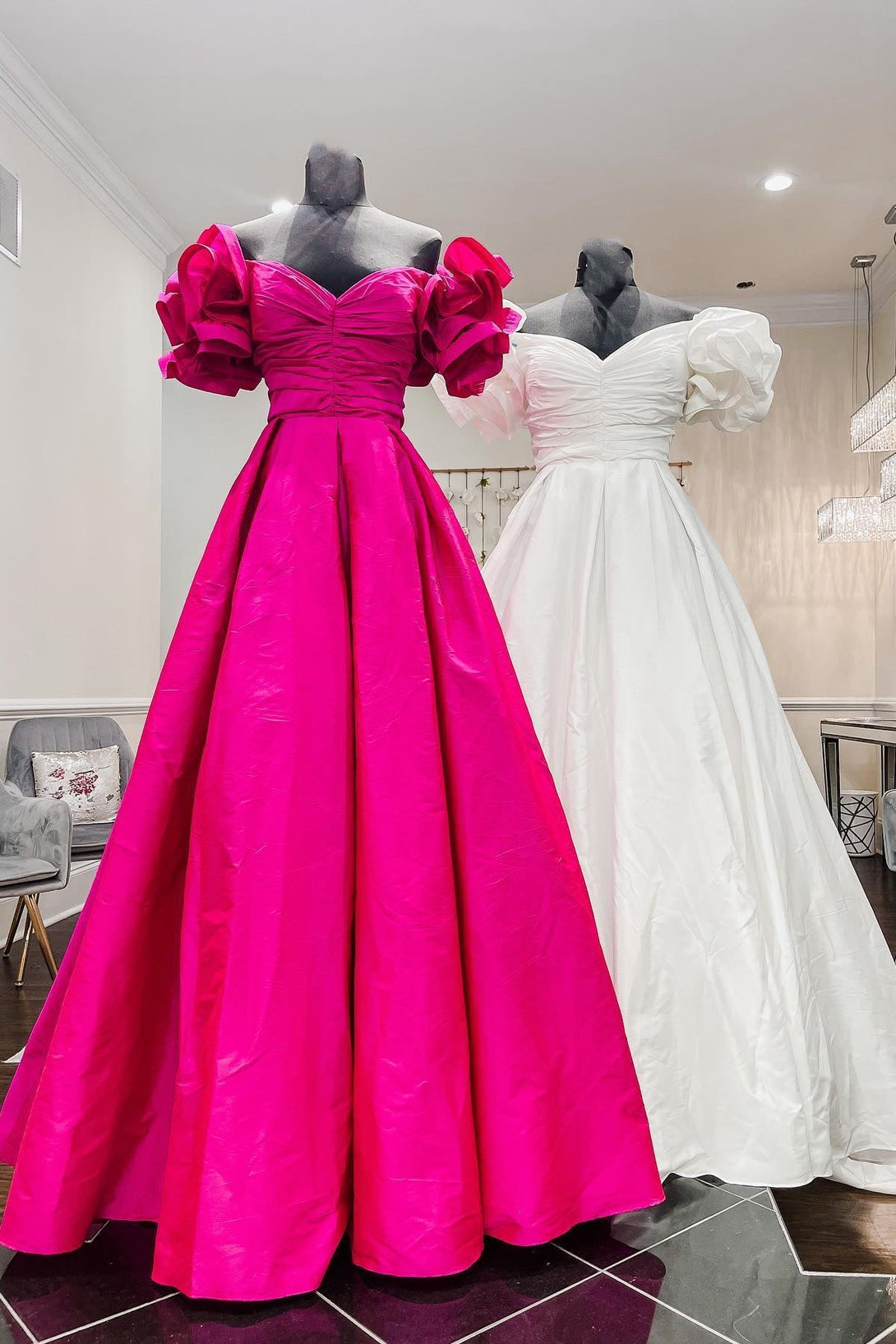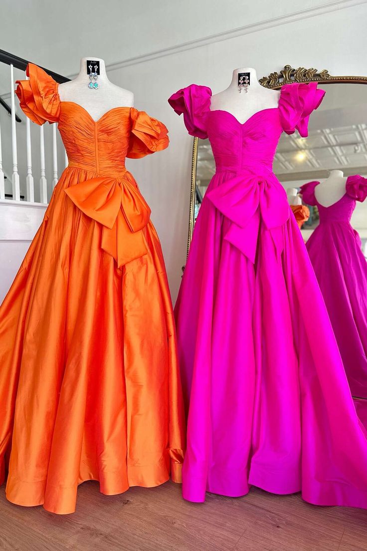Off the Shoulder Hot Pink Pleated Long Formal Dress