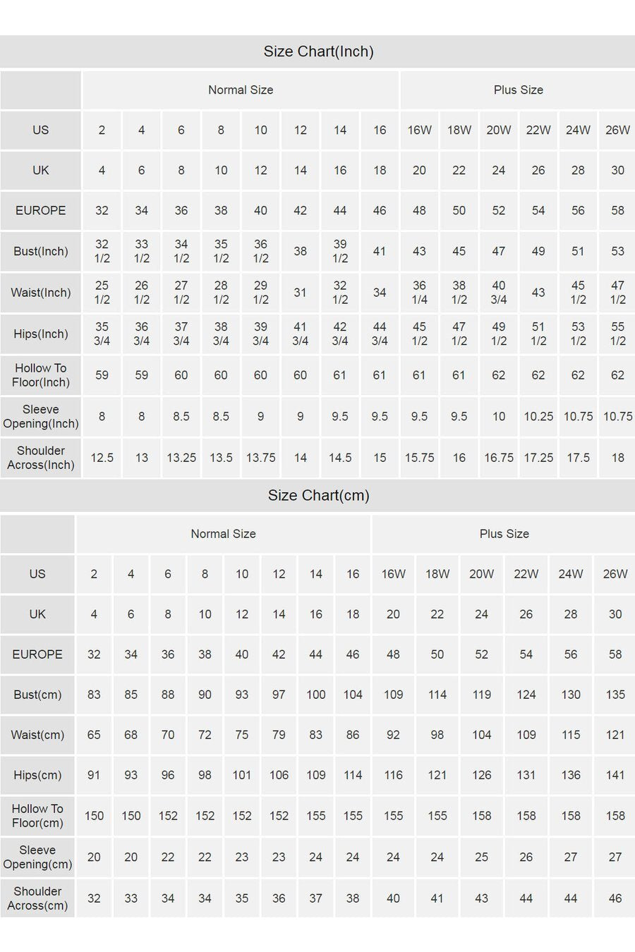 Custom Size. Please check our standard size chart carefully if you choose standard size and make sure the standard size could be fit you well. Your size. (bust). (waist). (hips). (Hollow to Hem). It is very important. Please do use the SIZE CHART IMAGE in the above. If dress is custom made, we need to size as following: