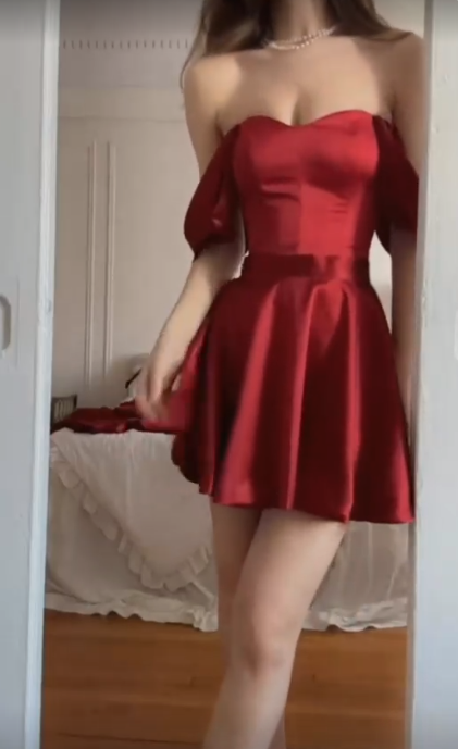 Off The Shoulder Red A-Line Satin Homecoming Dresses
