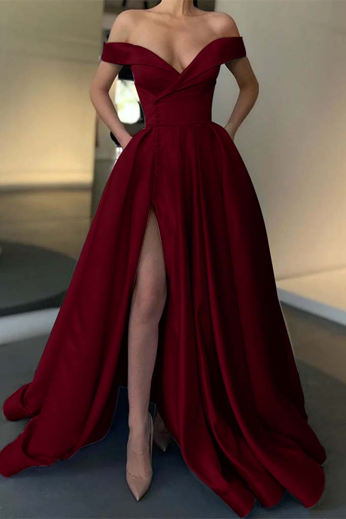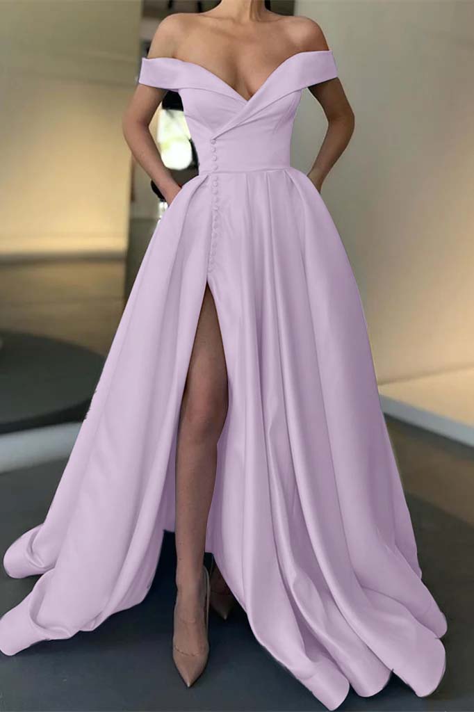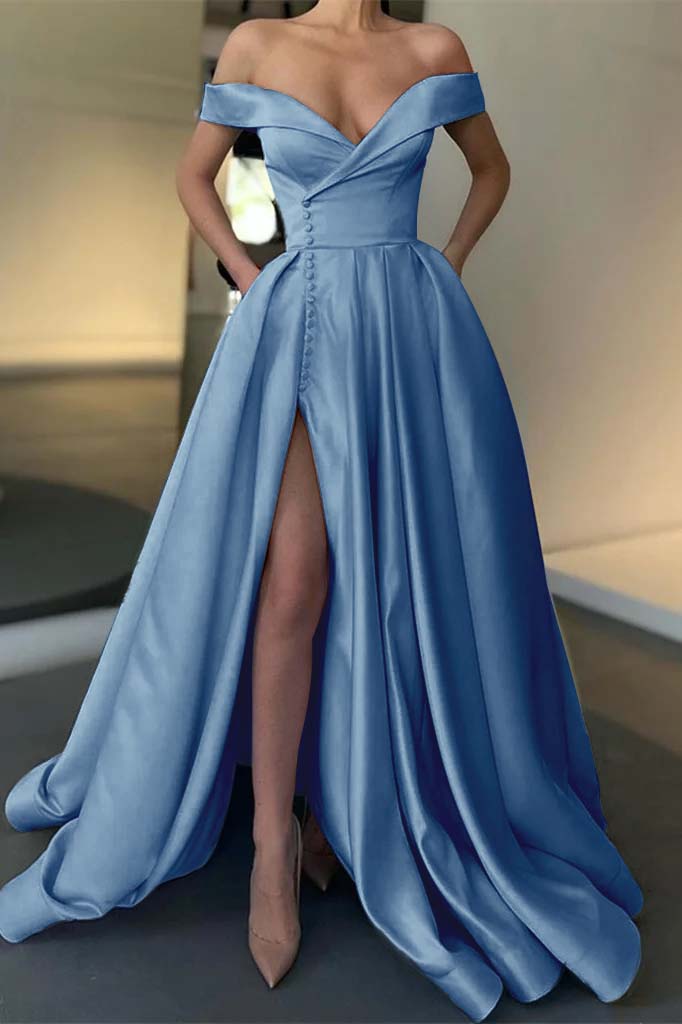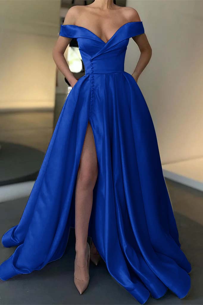 Off-the-Shoulder Long Split Prom Dress PD0386