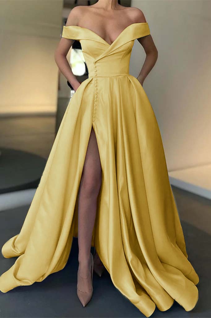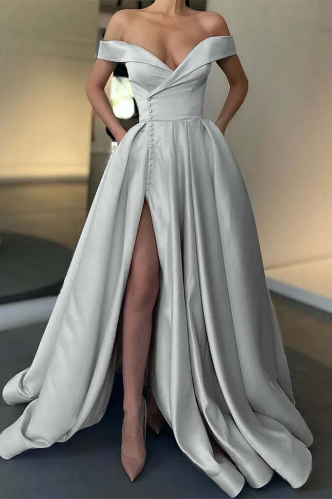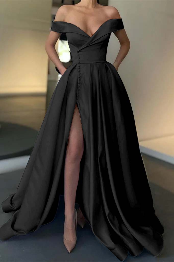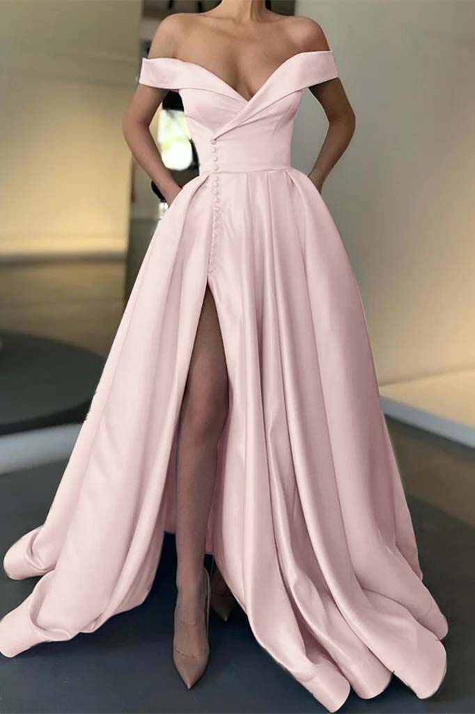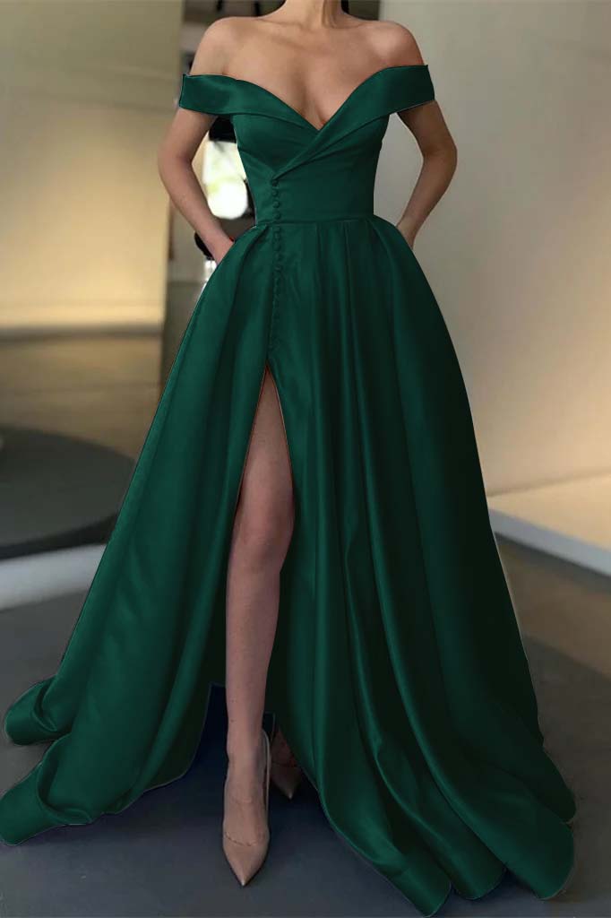 Off-the-Shoulder Long Split Prom Dress PD0386