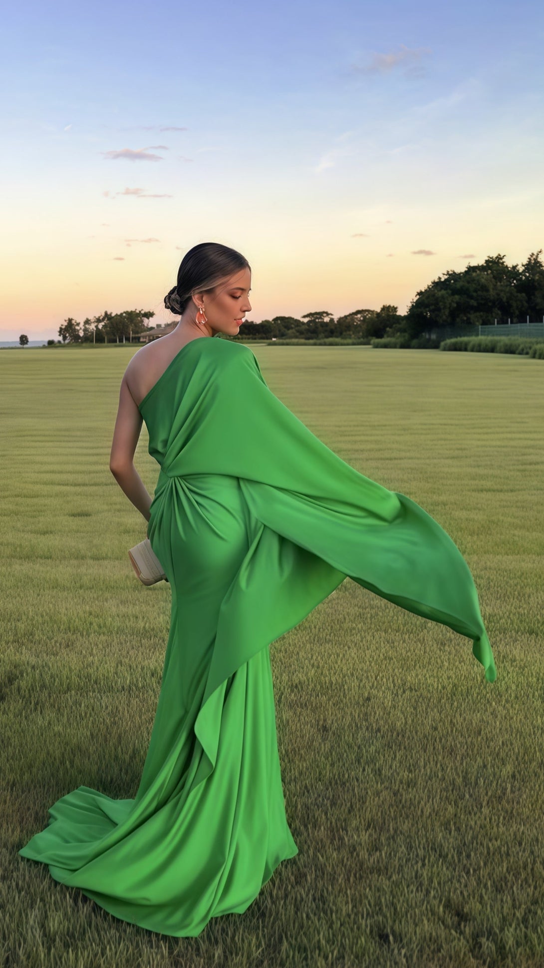 One Sleeves Green Sheath Long Prom Dress With Sweep Train,SSR3533