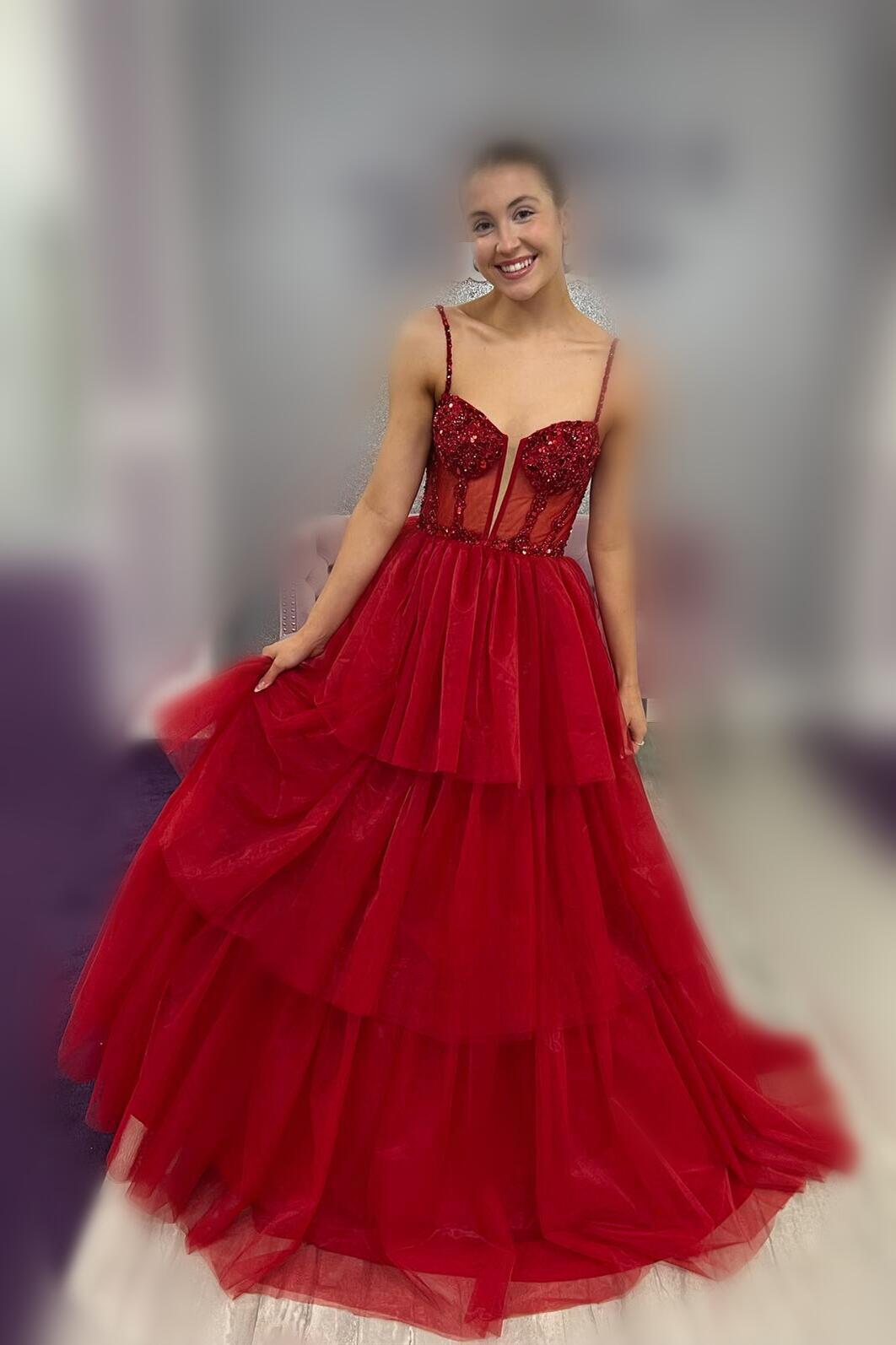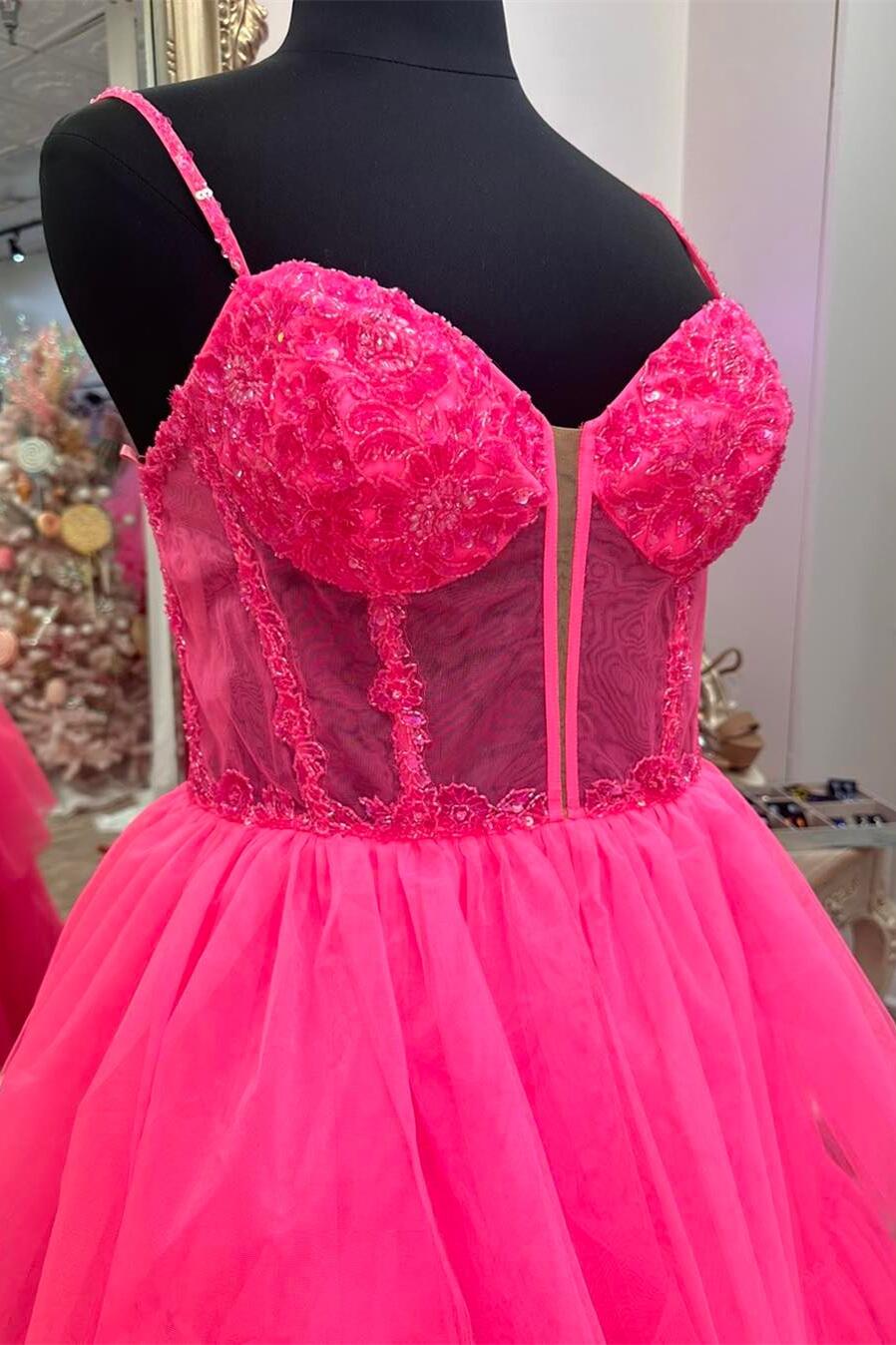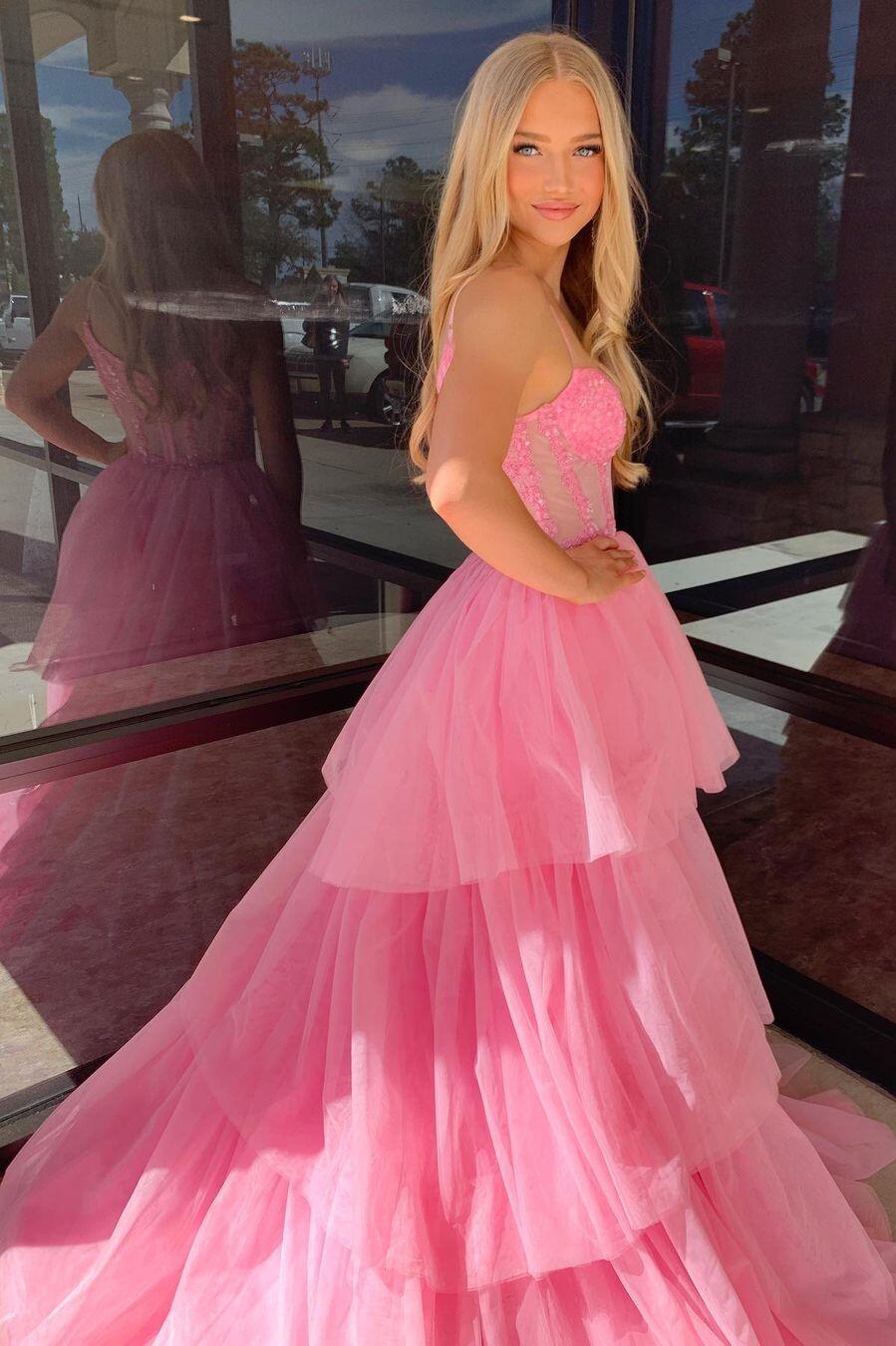 Pink Corset Tulle Ruffles A-line Formal Dress