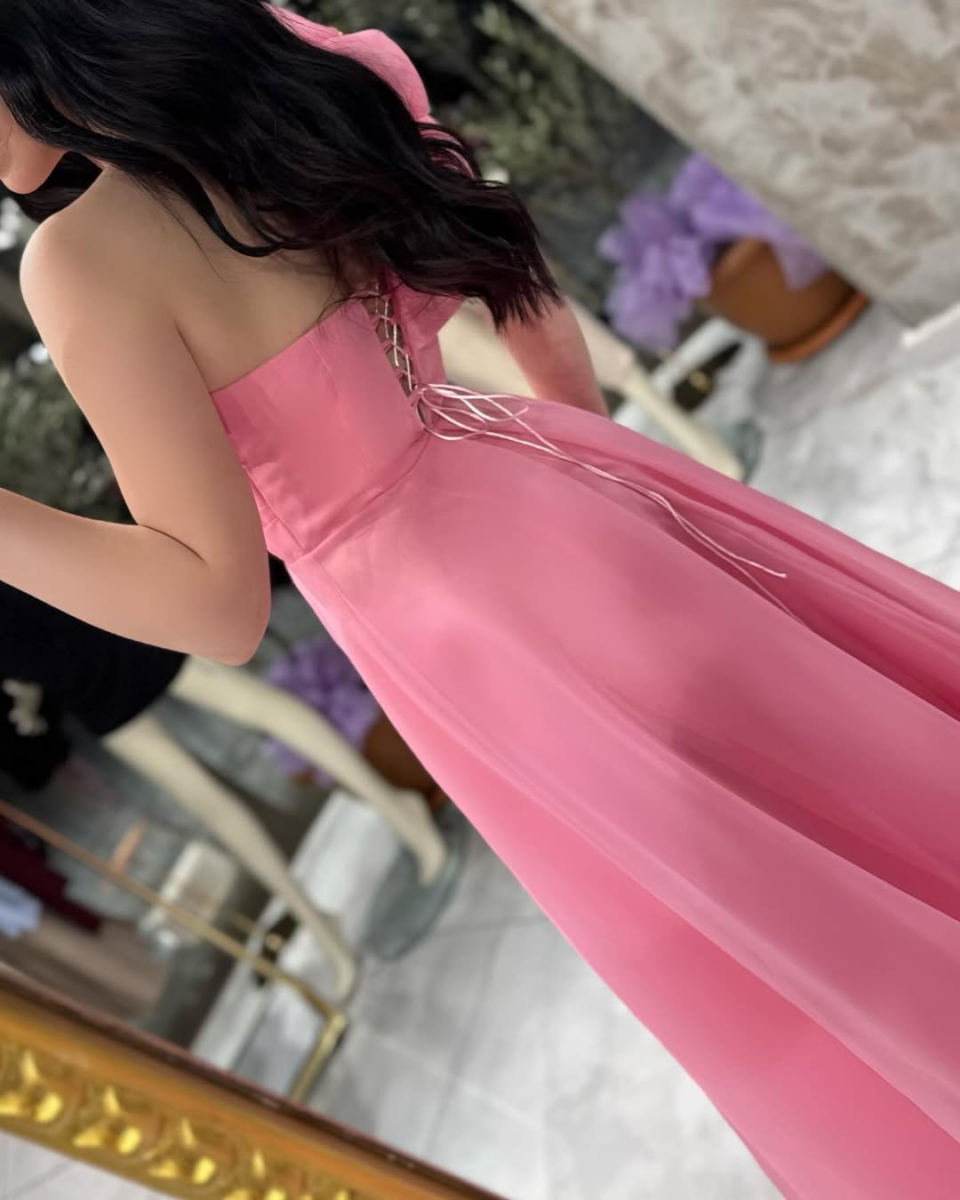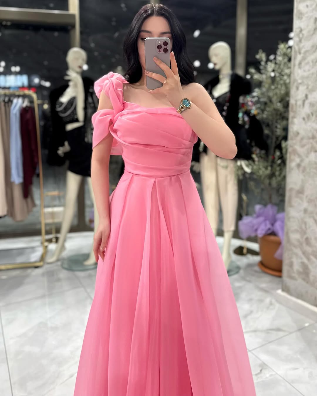 Pink One-Shoulder A-Line Pleated Prom Dress ssr0632