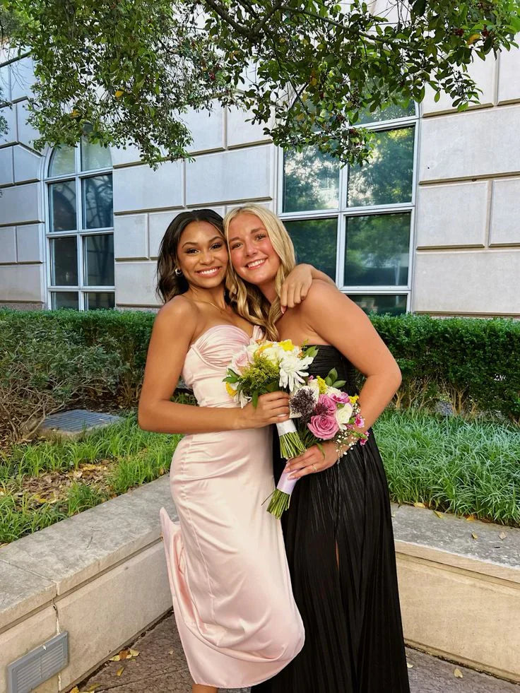 Pink Sweetheart Sheath Long Pary Dress Wedding Guest Dress with Slit Sexy Formal Dress