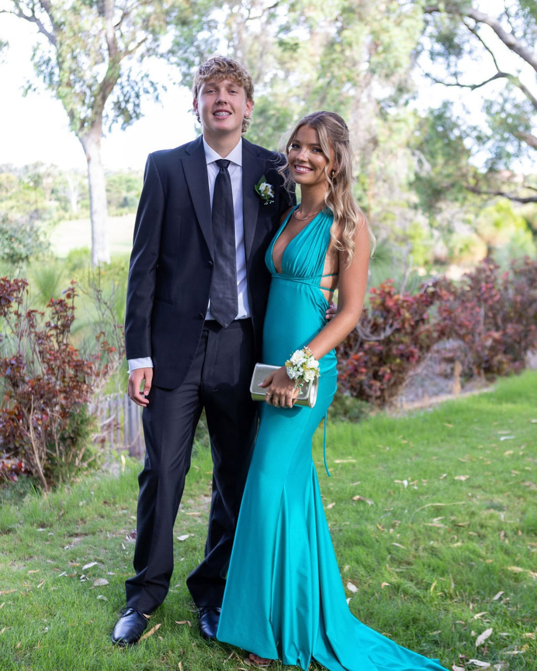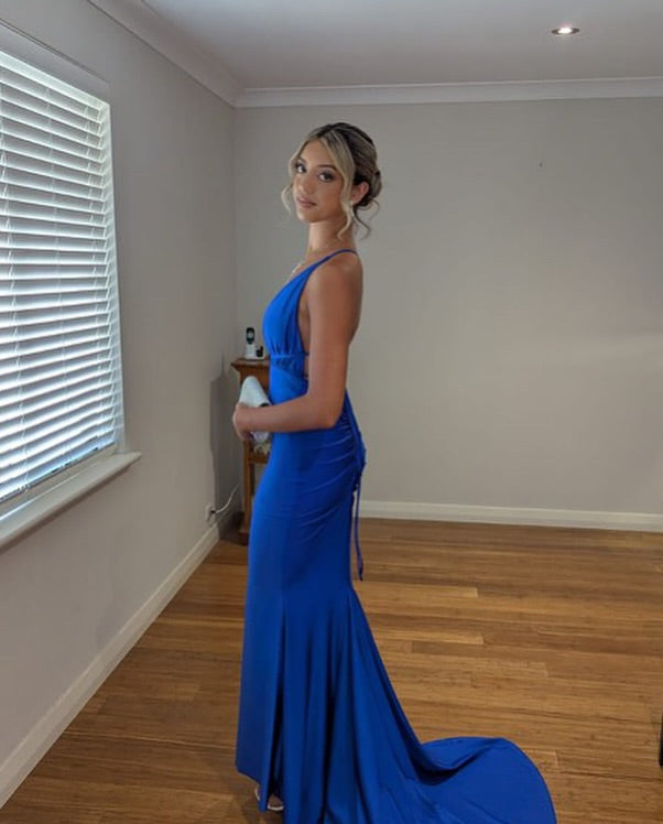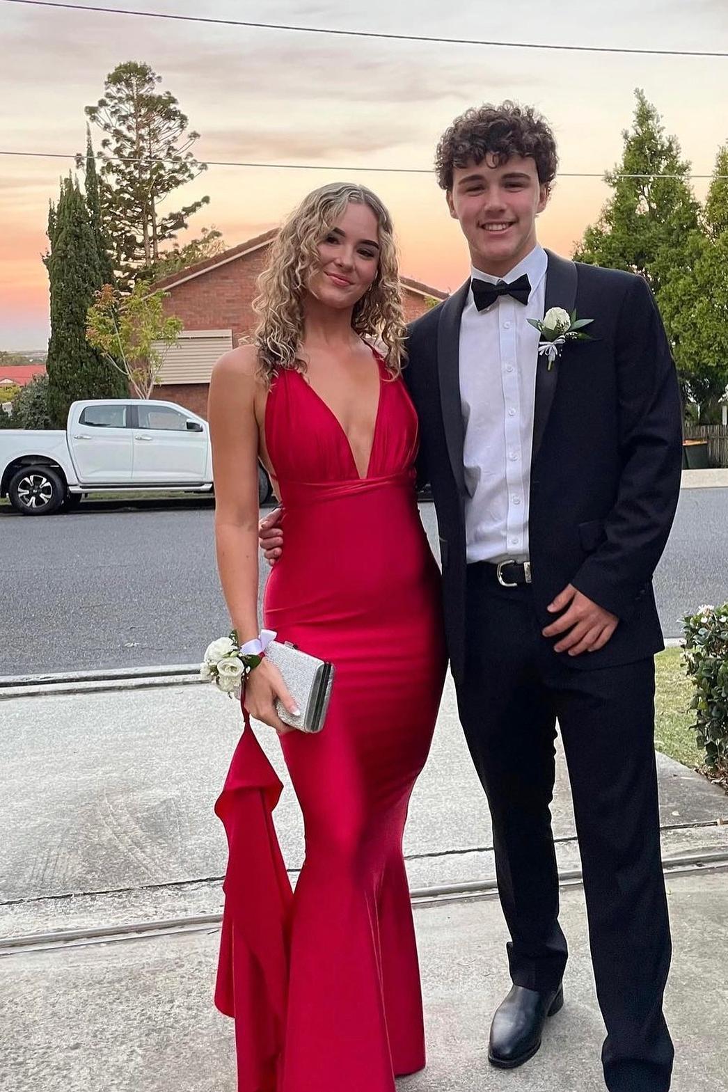 Plunge Pink Mermaid Long Formal Dress