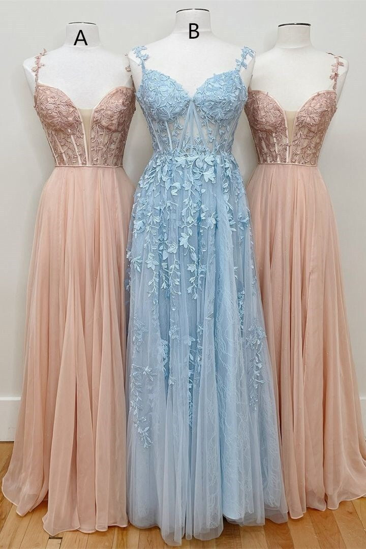 Red A-line Lace Appliques Chiffon Long Prom Dress