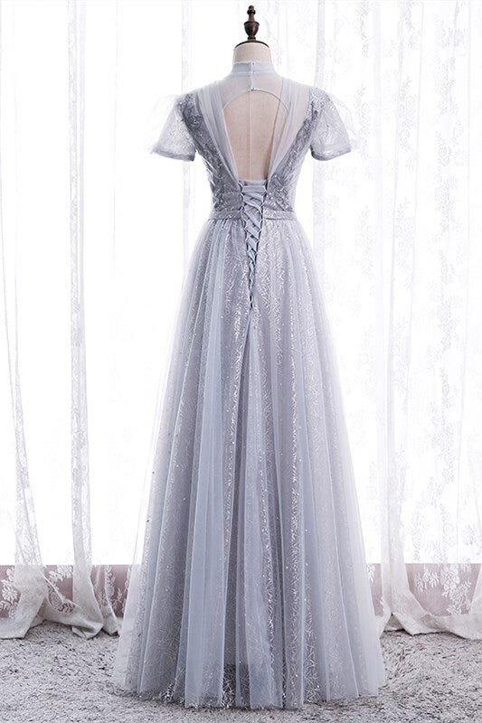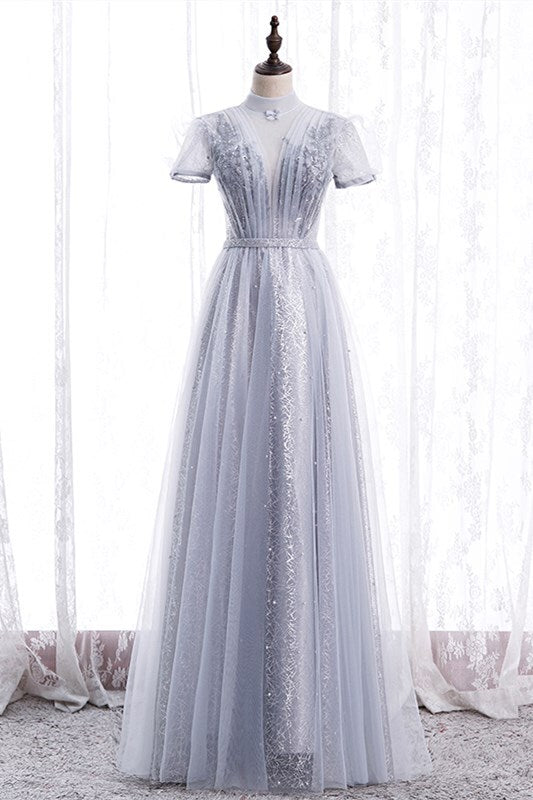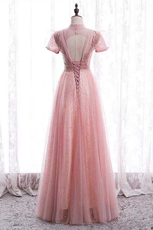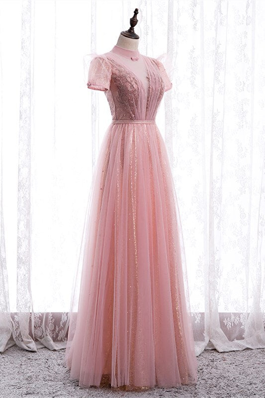 Princess High Neck Pink Long Party Dress