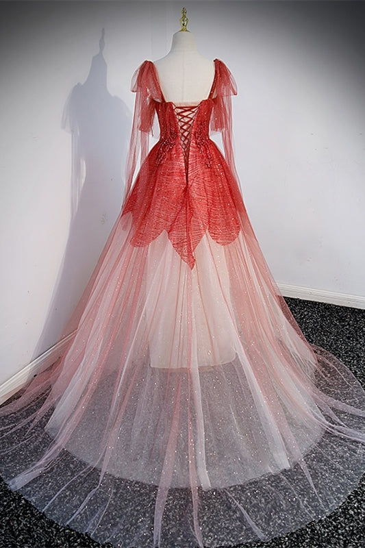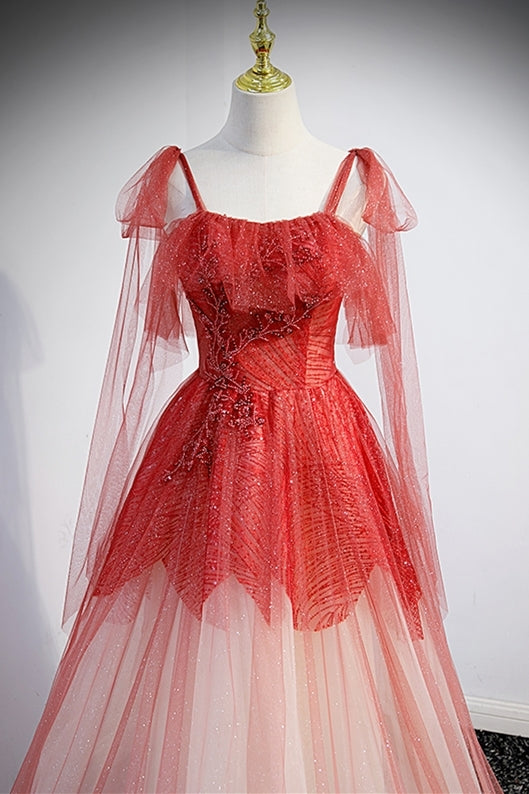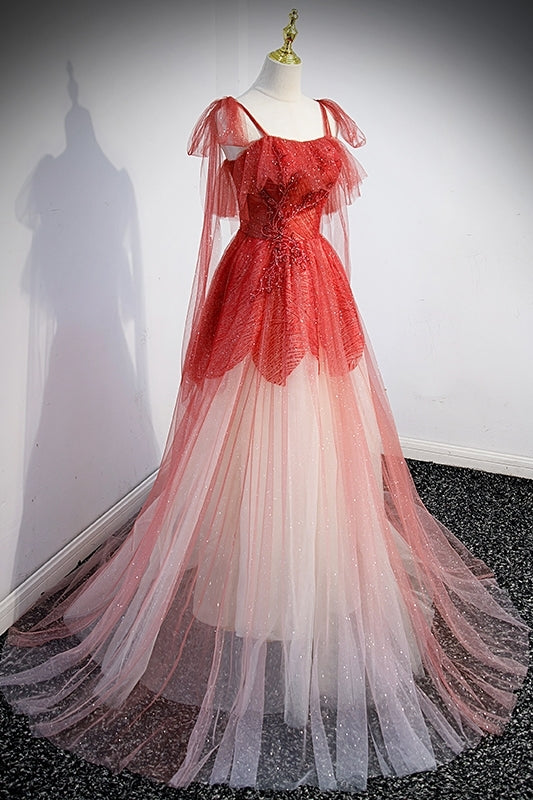 Princess Red Ombre A-line Long Formal Dress with Straps