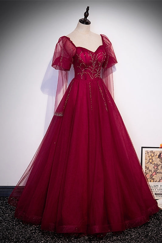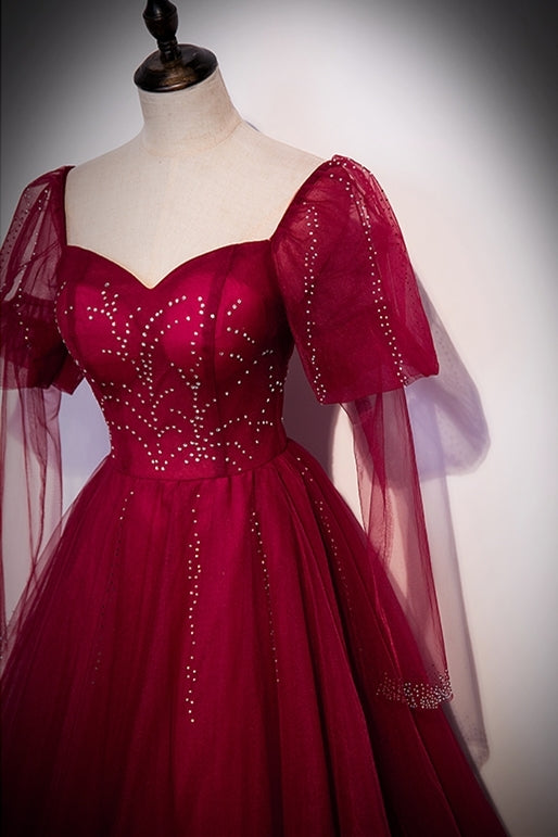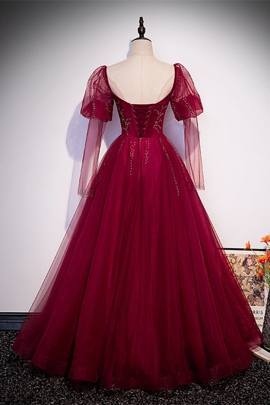 Princess Wine Red A-line Puffy Long Sleeves Formal Dress