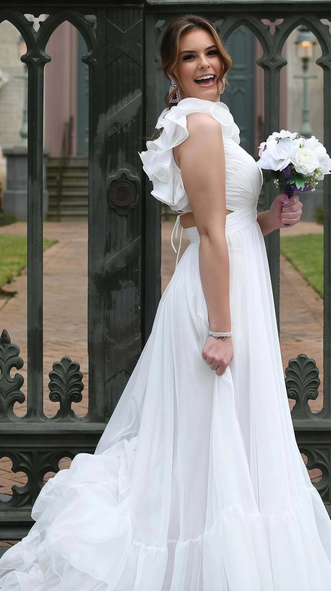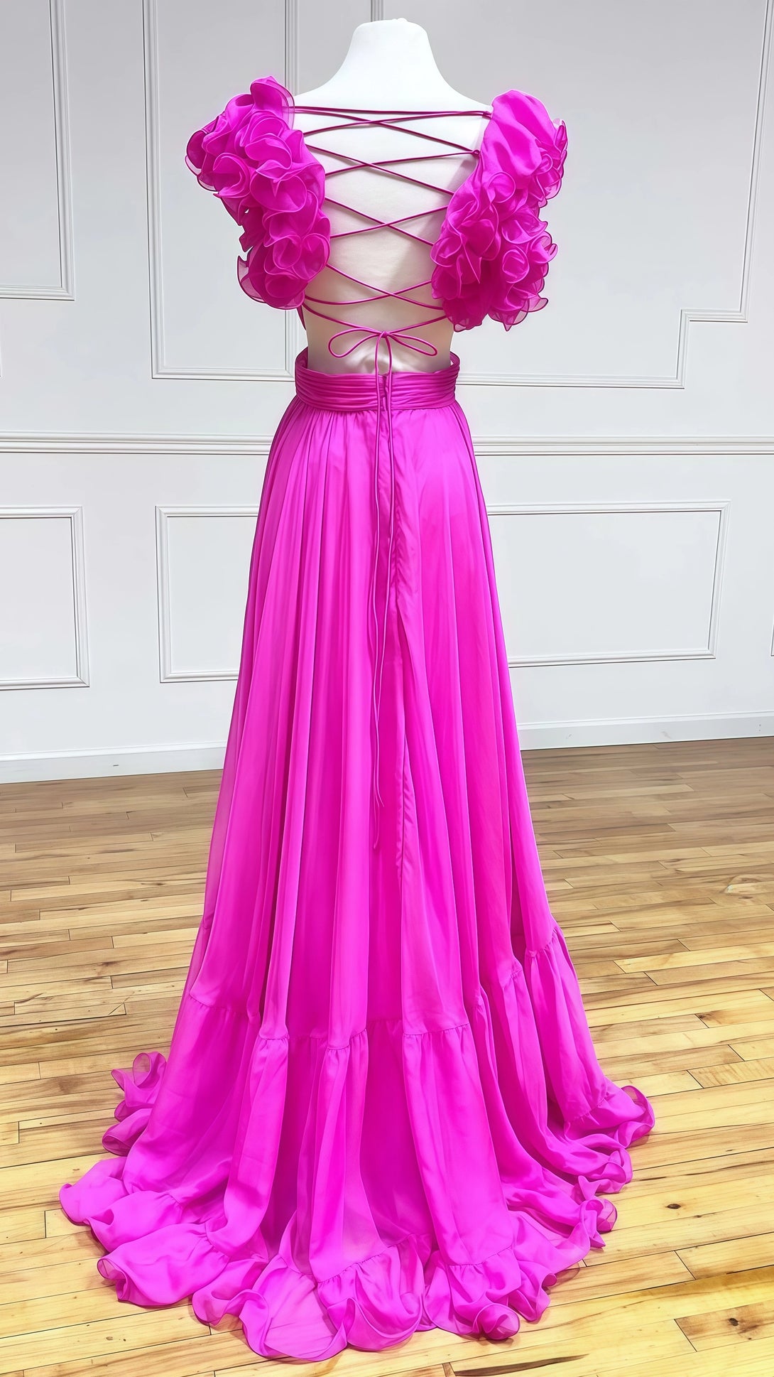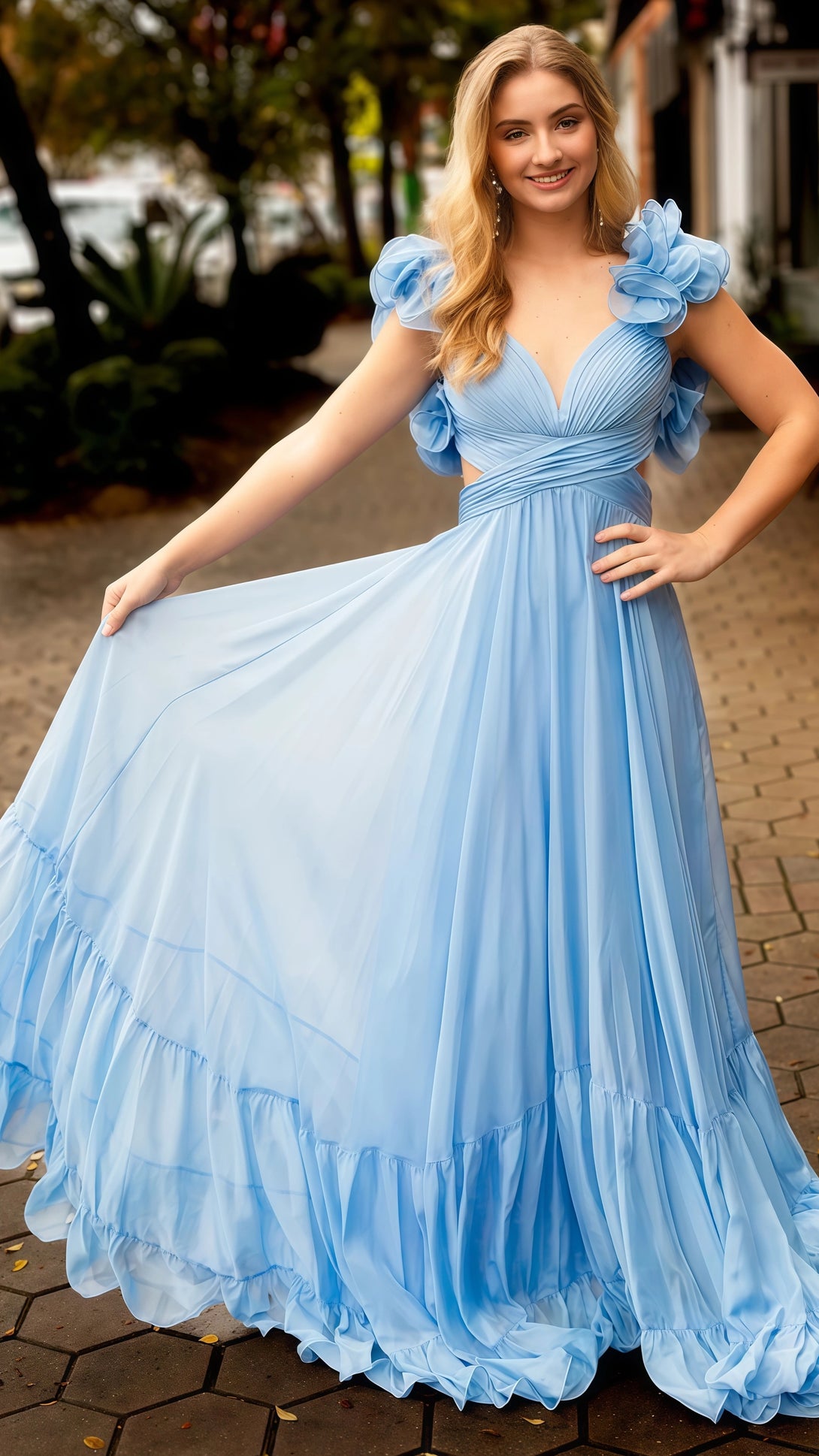 Experience elegance and sophistication in our A-Line Prom Dresses with Ruffle Cap Sleeves and a flattering V-neck. Perfect for senior prom, these dresses offer a stunning silhouette and eye-catching details. Make a statement in style and comfort with SSR1035.