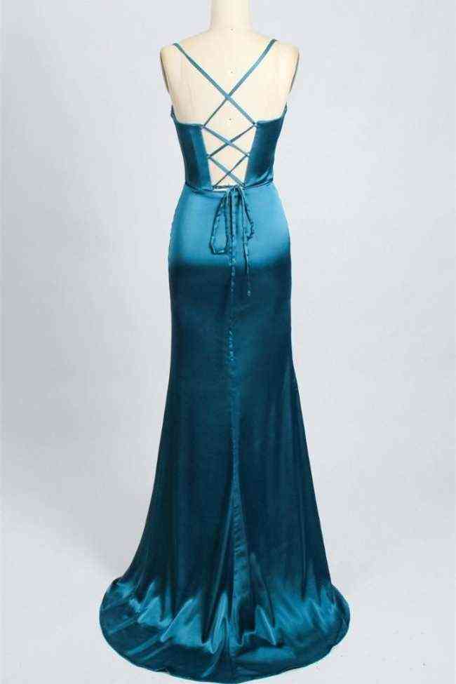 Elegant Red Straps Corset Back Long Prom Dress with Slit, SSR1224