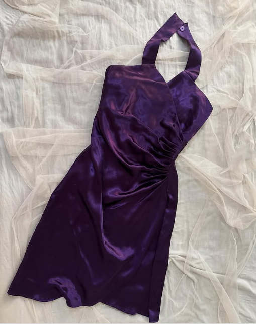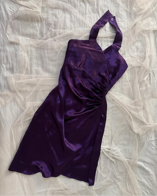 This purple satin homecoming dress combines elegance with simplicity, featuring a pleated short skirt and delicate suspender straps. Its refined design offers a flattering silhouette perfect for birthday parties and special occasions. Crafted for comfort and style, this dress ensures you stand out with understated sophistication.