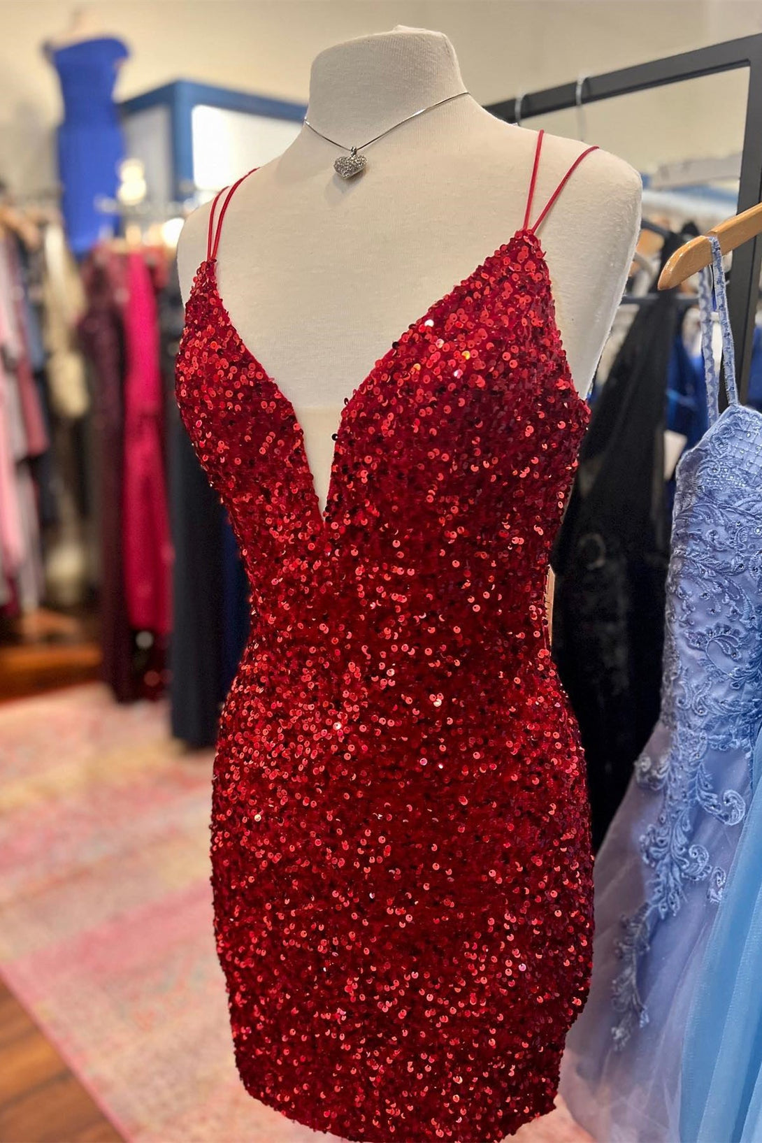 Purple Sequin Straps Tight Mini Party Dress