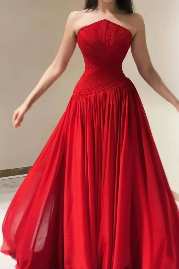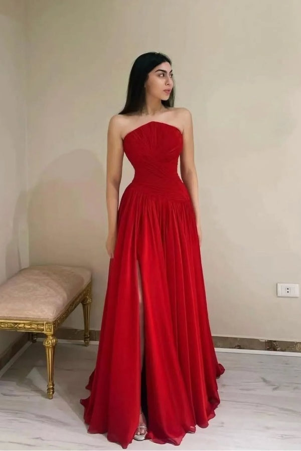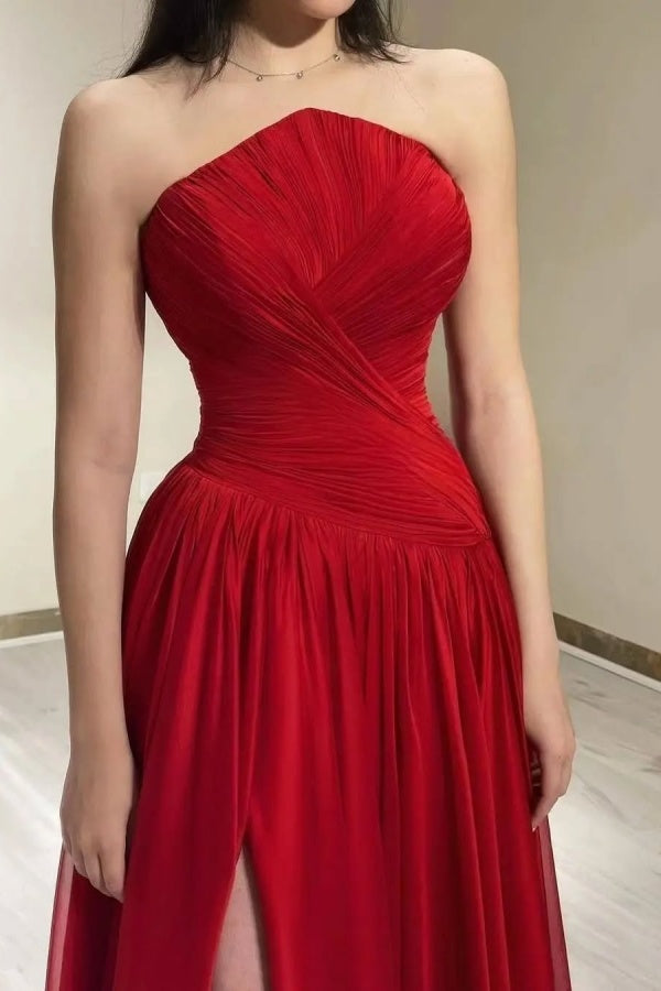 Red Chiffon Strapless Split Prom Dress ssr0508