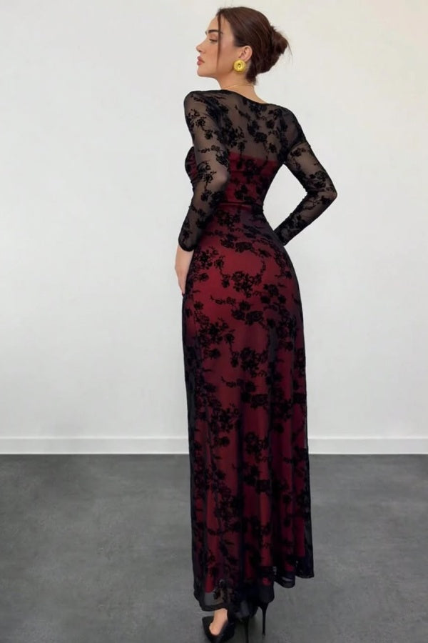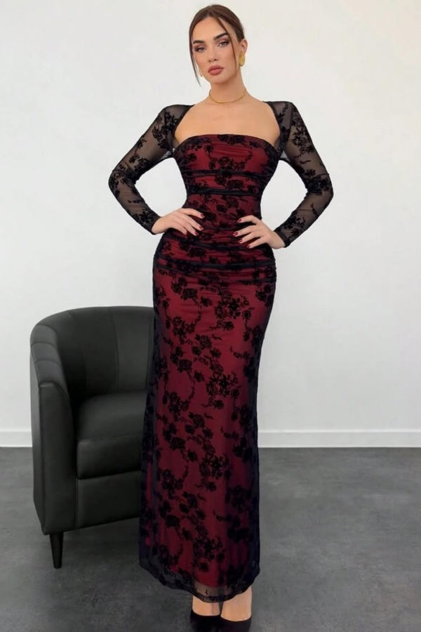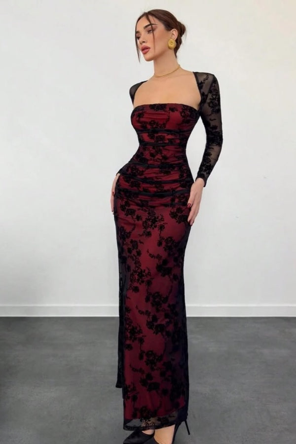 Red Lining Slim Fit Black Lace Long Sleeves Prom Dress ssr0491