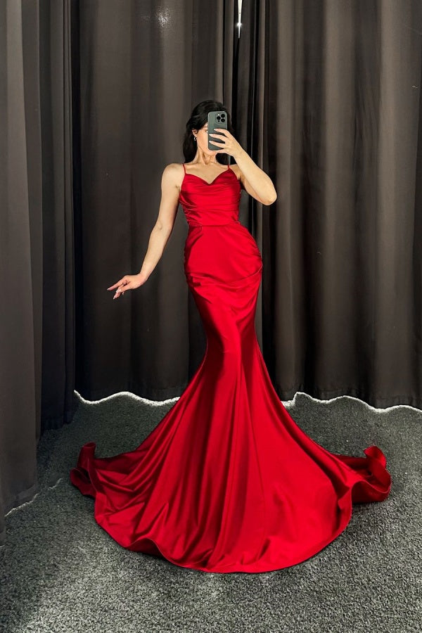 Red Mermaid Long Spaghetti-Straps Charming Prom Dress ssr0286