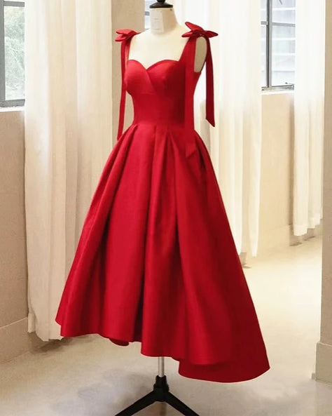 Red Satin High Low Formal Dress with Bow Prom Dress Party Dress Evening Dress Cocktail Dress