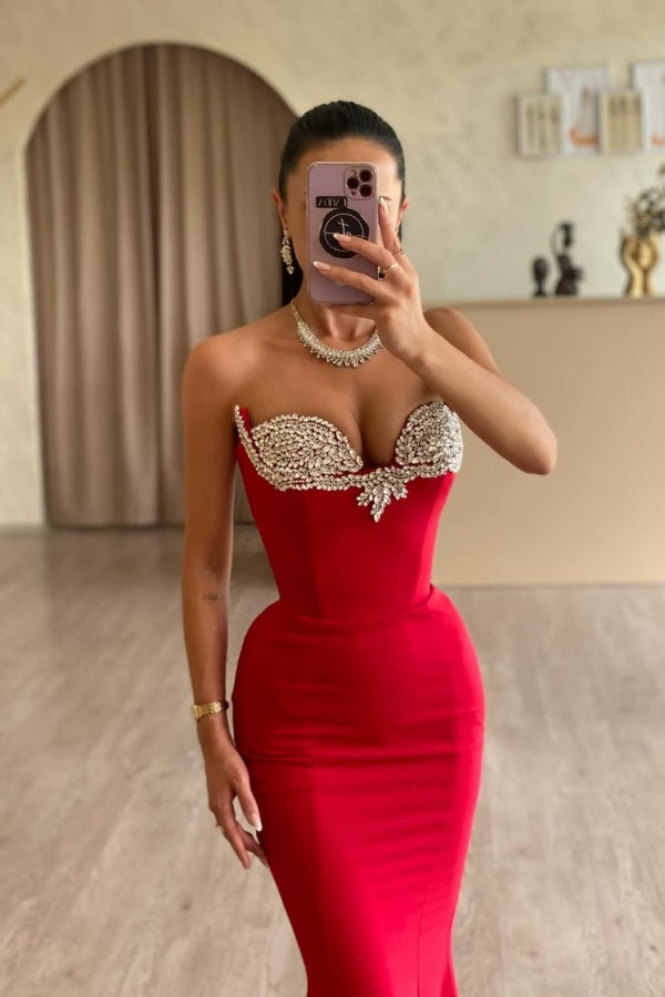 Red Strapless Mermaid Slim Fit Beaded Formal Prom Dress ssr0533