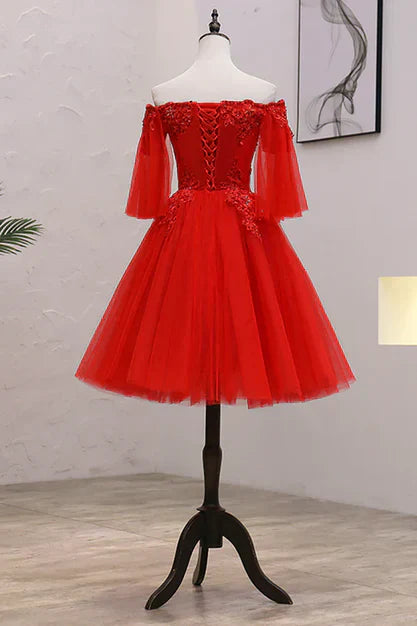 Red Sweetheart Tulle with Lace and Beaded Homecoming Dress Party Dress Off Shoulder