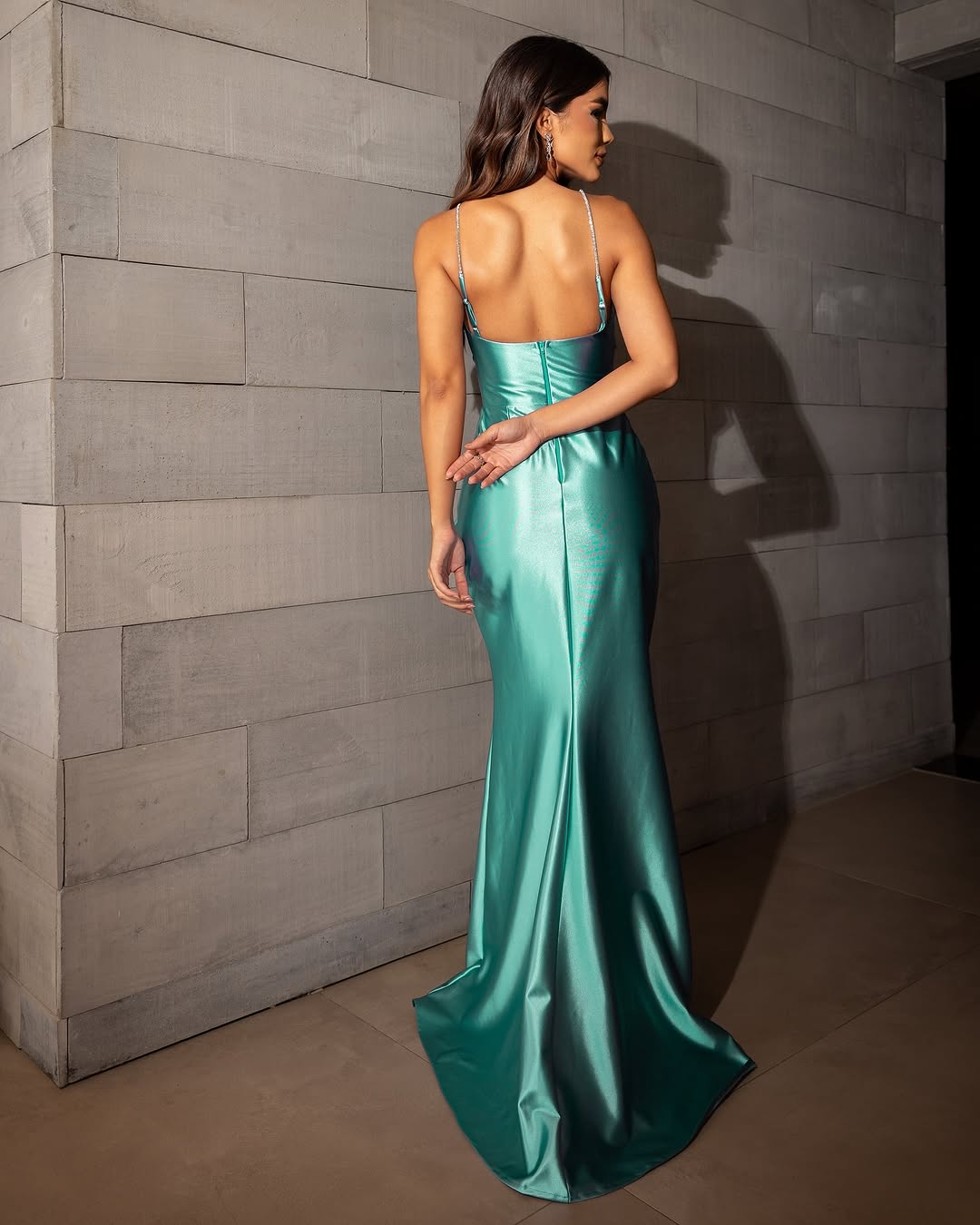 Royal Blue Split Sweetheart Spaghetti Straps Prom Dress ssr0514