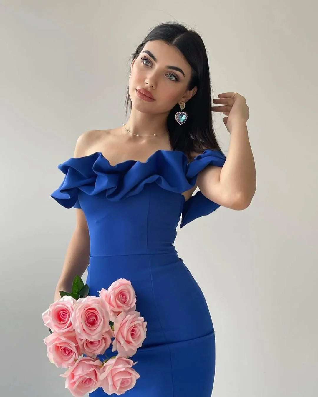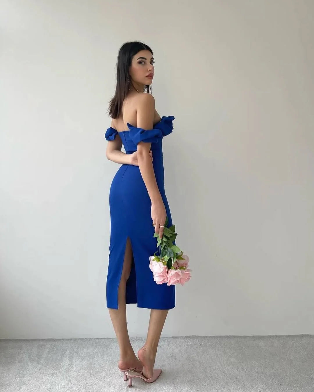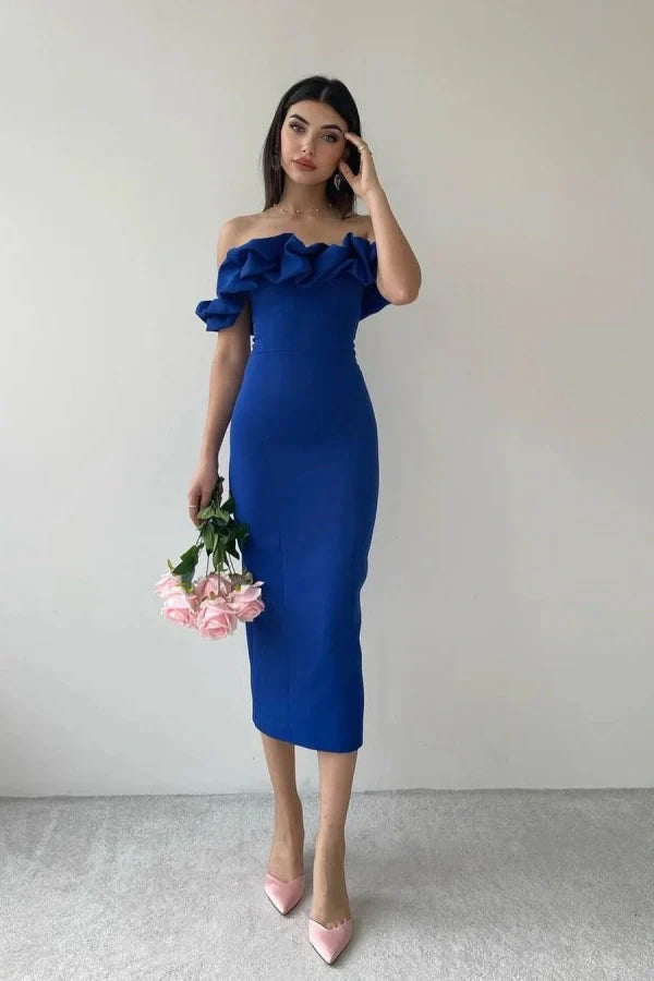 Royal Blue Strapless Off-The-Shoulder Prom Dress ssr0309