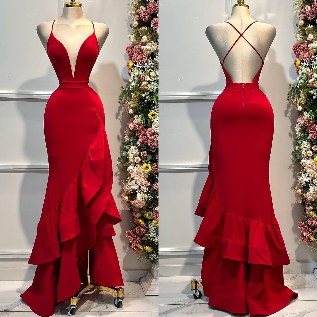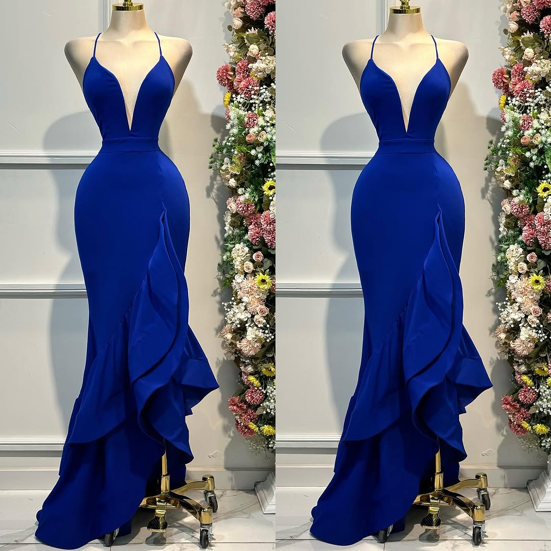 Royal Blue V-Neck Ruffles Backless Prom Dress ssr0461