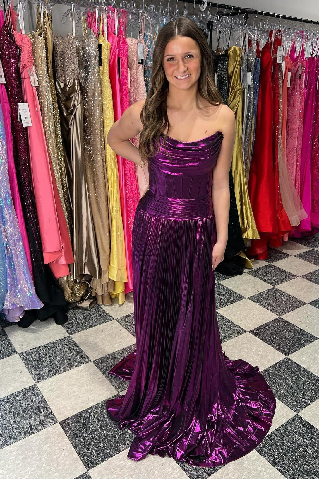 Ruched Strapless Green Metallic A-line Long Formal Dress